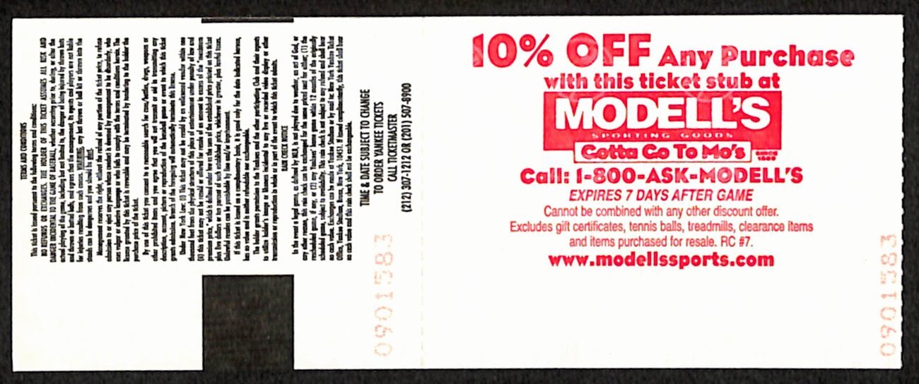 1999 Ticket Stub Yankees Vs. Rays Ny Clinch'S Al East Soriano 1St Career Hit