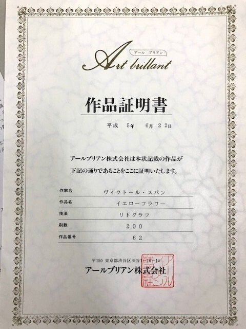 Victor Spahn Original Lithograph Print "Yellow Flower" Paris Signed Coa
