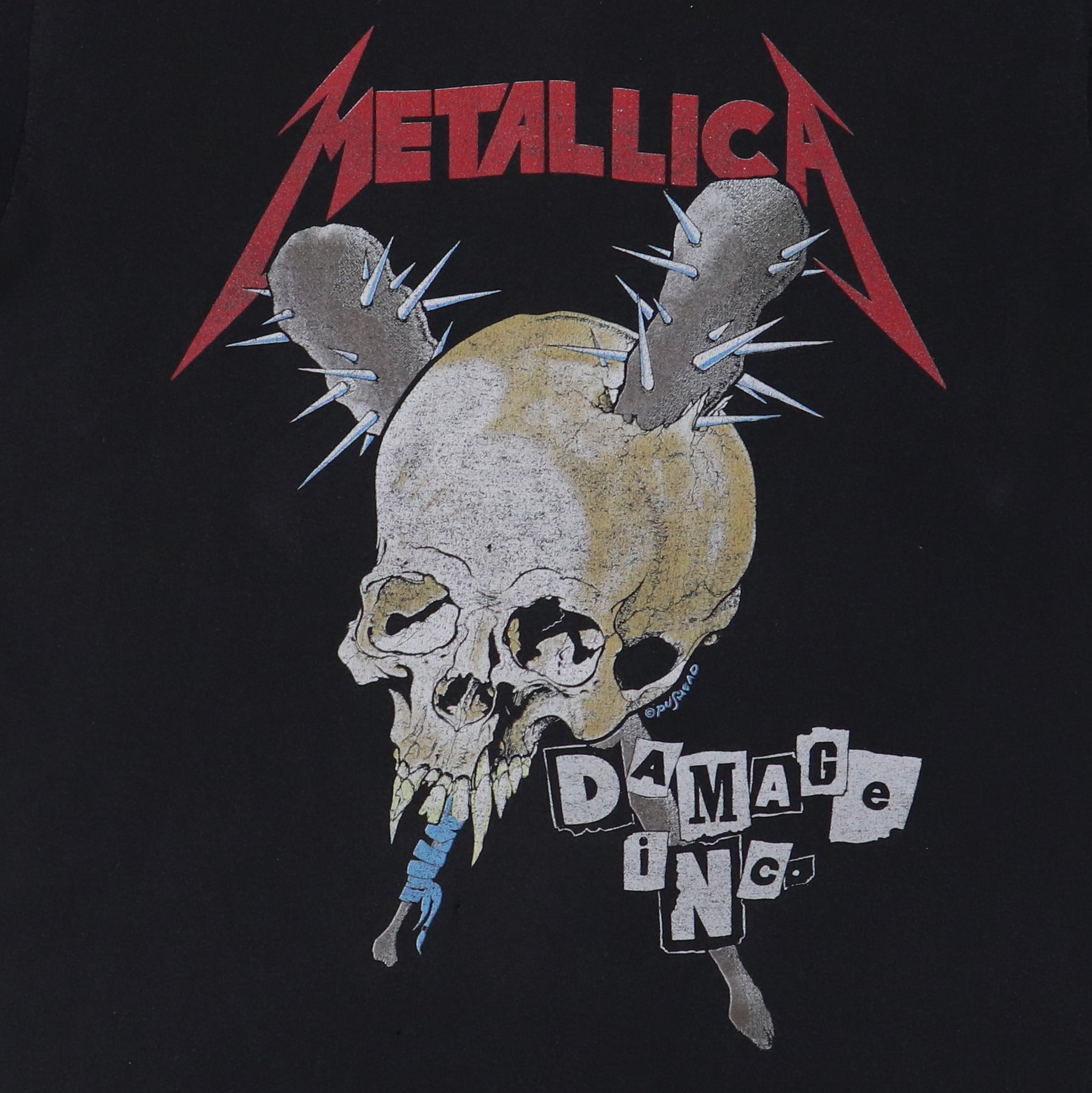 Original vintage 1980s Metallica Damage Inc Tour Shirt. This is a true vintage shirt, not a modern reproduction. Sizes vary so please use measurements for best idea on fit. Front and back graphics. Shirt is in worn condition, holes throughout, discoloration throughout. This shirt will arrive washed and ready to wear.