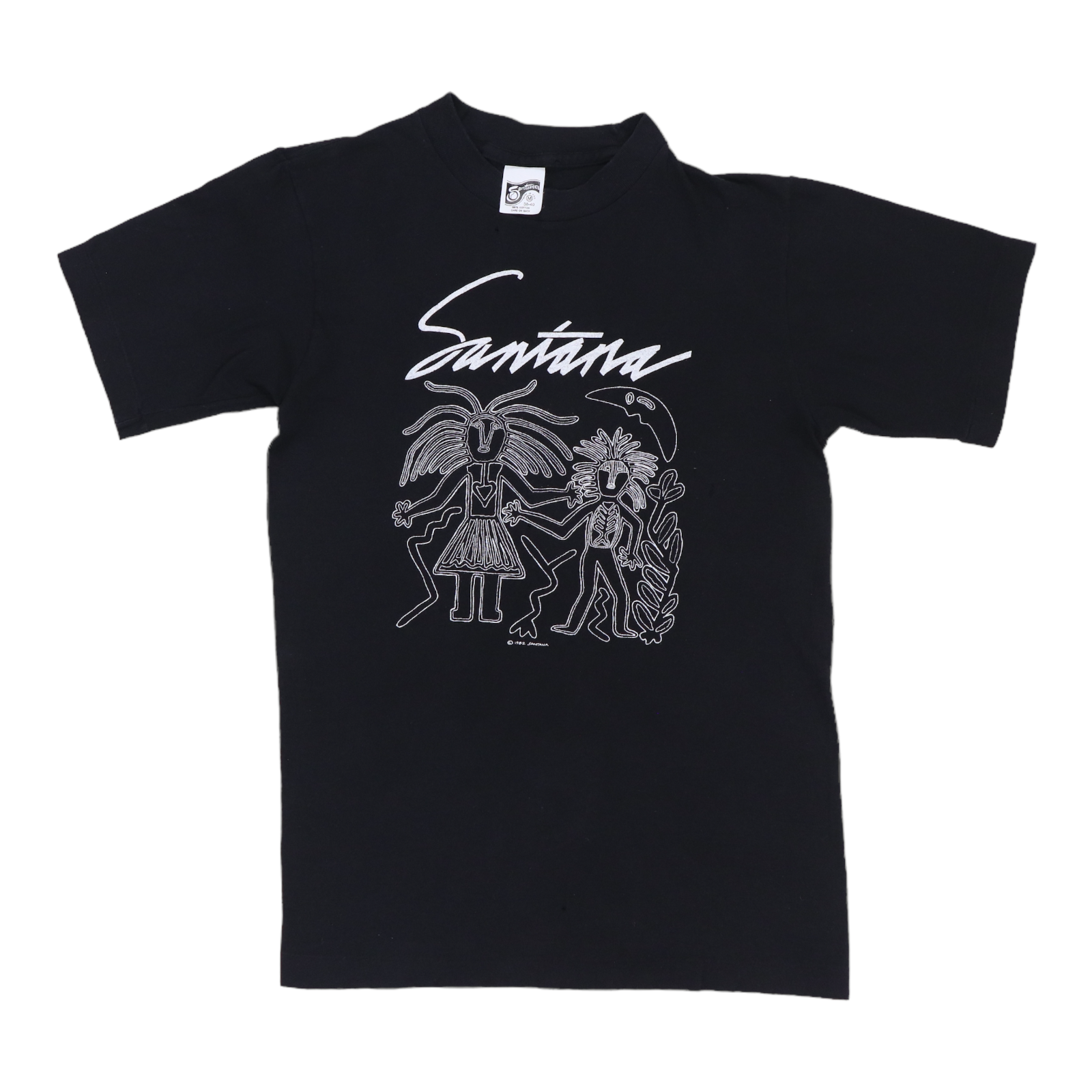 Original vintage 1982 Santana Shang Tour Shirt. This is a true vintage shirt, not a modern reproduction. Sizes vary so please use measurements for best idea on fit. Front and back graphics. Shirt is in worn condition, holes on front, discoloration throughout. This shirt will arrive washed and ready to wear.