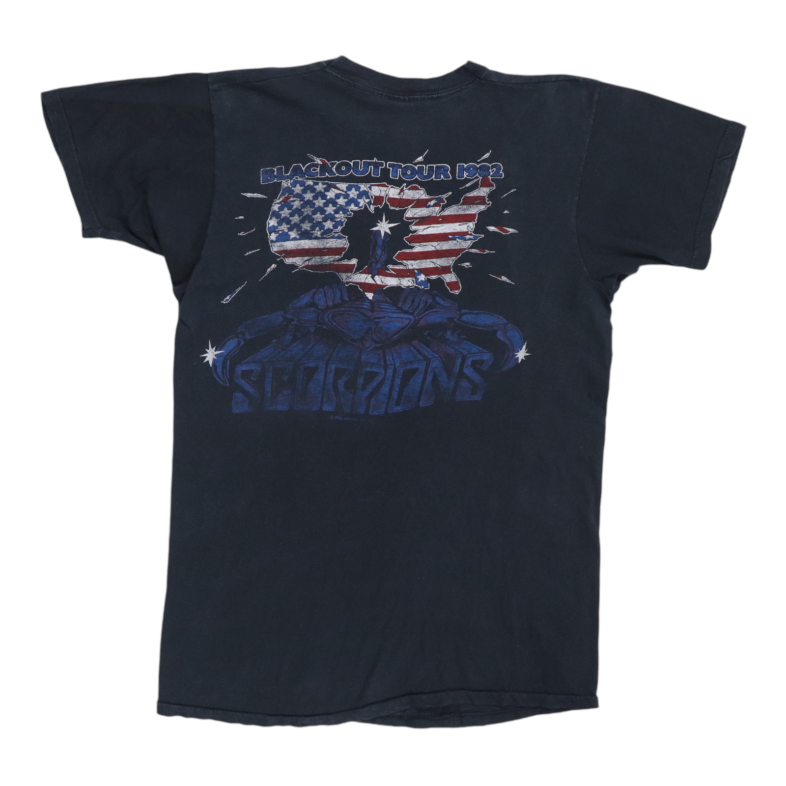 Original vintage 1982 Scorpions Blackout Tour Shirt. This is a true vintage shirt, not a modern reproduction. Sizes vary so please use measurements for best idea on fit. Front and back graphics. Shirt is in good condition, hole in sleeve, no stains. This shirt will arrive washed and ready to wear.