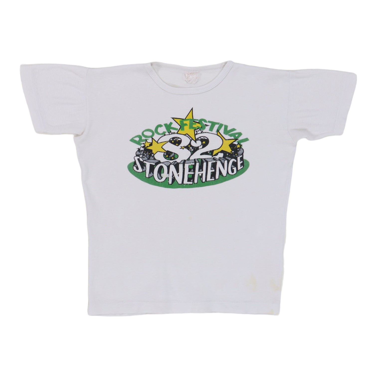 Original vintage 1982 Stonehenge Rock Festival Shirt. This is a true vintage shirt, not a modern reproduction. Sizes vary so please use measurements for best idea on fit. No back graphics. Shirt is in worn condition, no holes, discoloration throughout. This shirt will arrive washed and ready to wear.