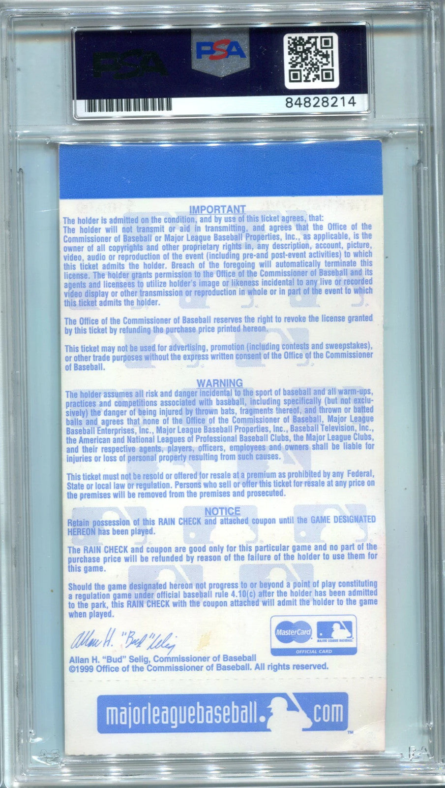 Mariano Rivera Autographed 1999 World Series Game 4 Ticket Stub (PSA).This ticket is from Game 4 of the 1999 World Series