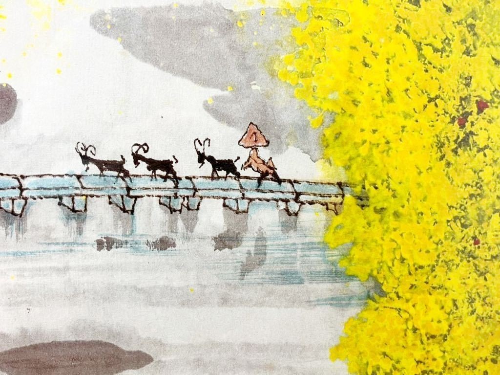 Zhang Bu (Chinese) Original Lithograph "Fall Mountain" Signed Numbered Framed