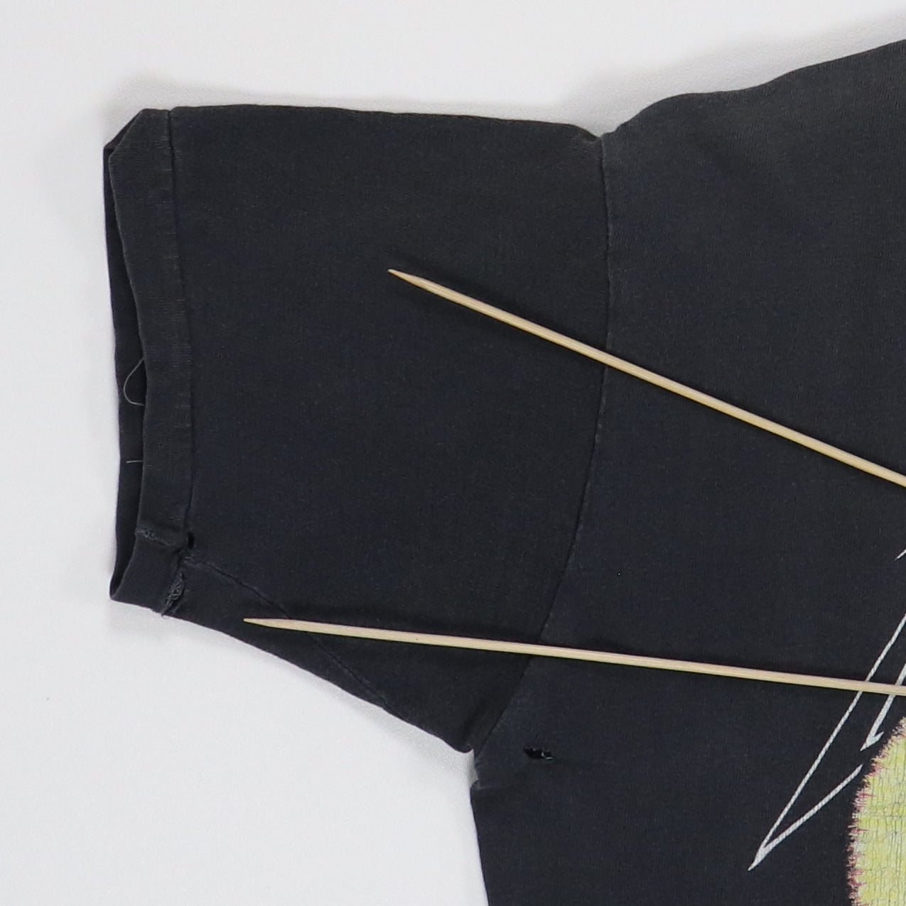 Original vintage 1980s Metallica Shortest Straw Shirt. This is a true vintage shirt, not a modern reproduction. Sizes vary so please use measurements for best idea on fit. Front and back graphics. Shirt is in worn condition, holes throughout, no stains. This shirt will arrive washed and ready to wear.