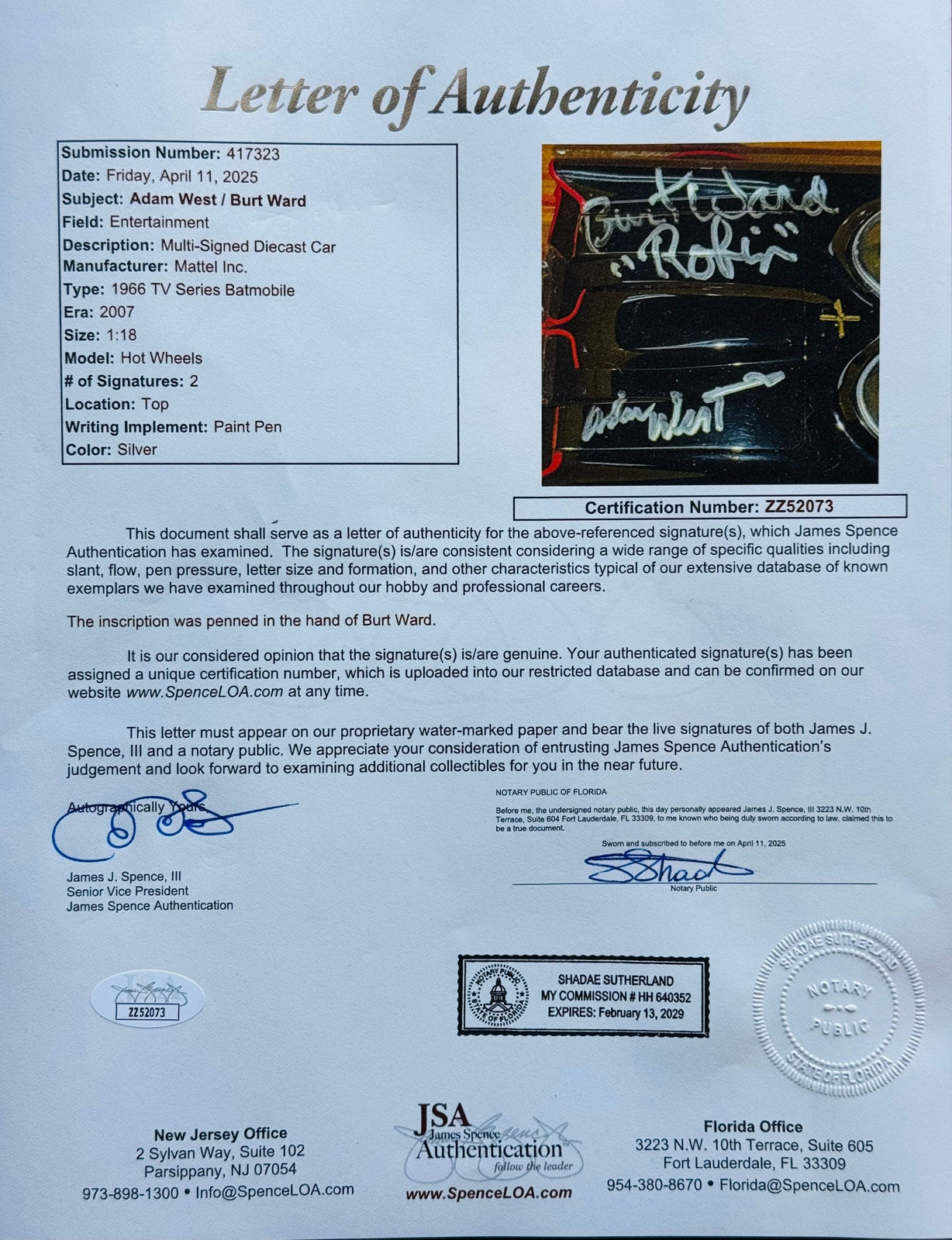 Adam West & Burt Ward Autographed Batman&Robin 1:18 Scale Hot Wheels Batmobile (