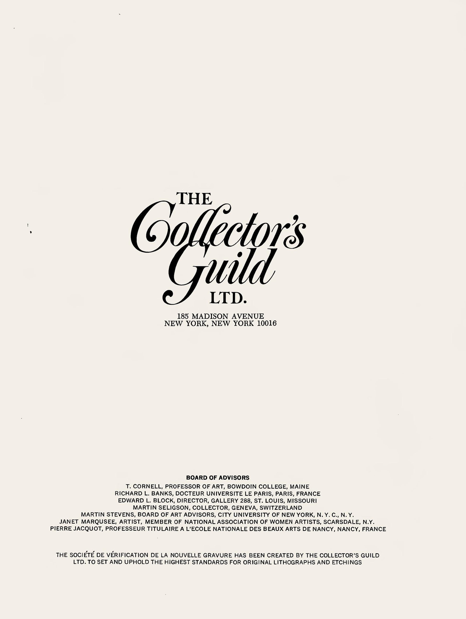 Notes: Published by The Collector's Guild Ltd., New York in association with The Socit de Vrification de la Nouvelle Gravure Internationale of New York and Paris; printed by Maeght diteur, Paris, 1972.
