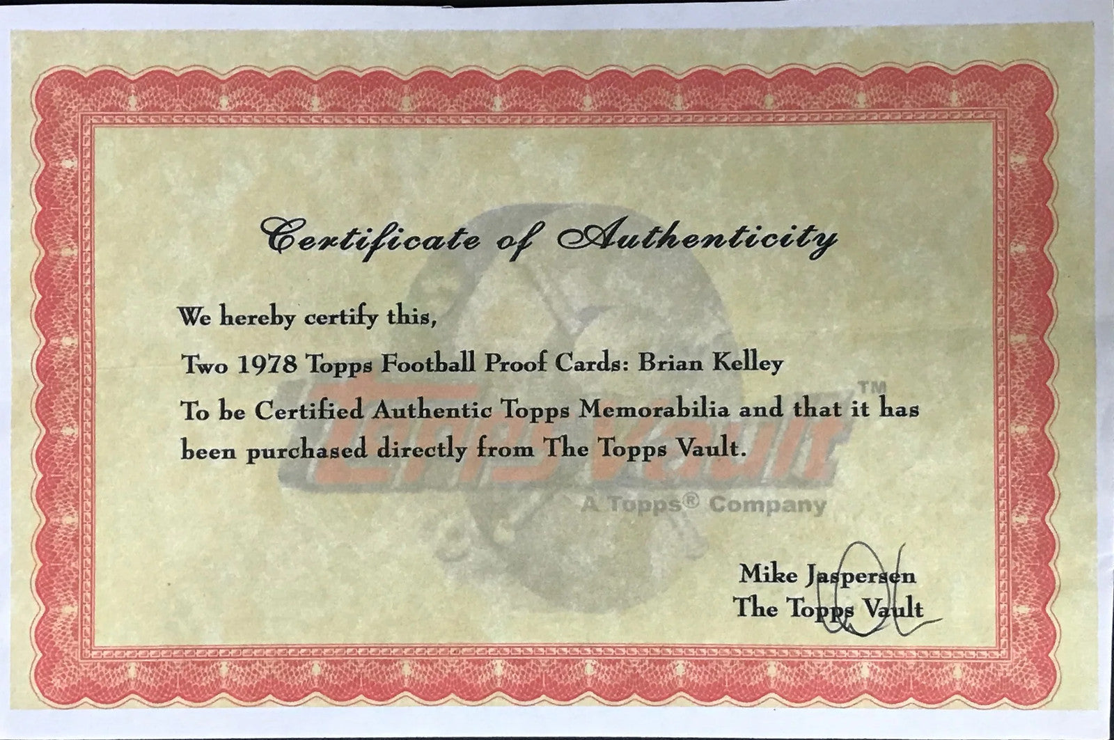 1978 Topps Football Proof Card Brian Kelley New York Giants