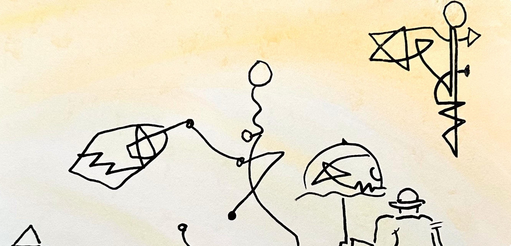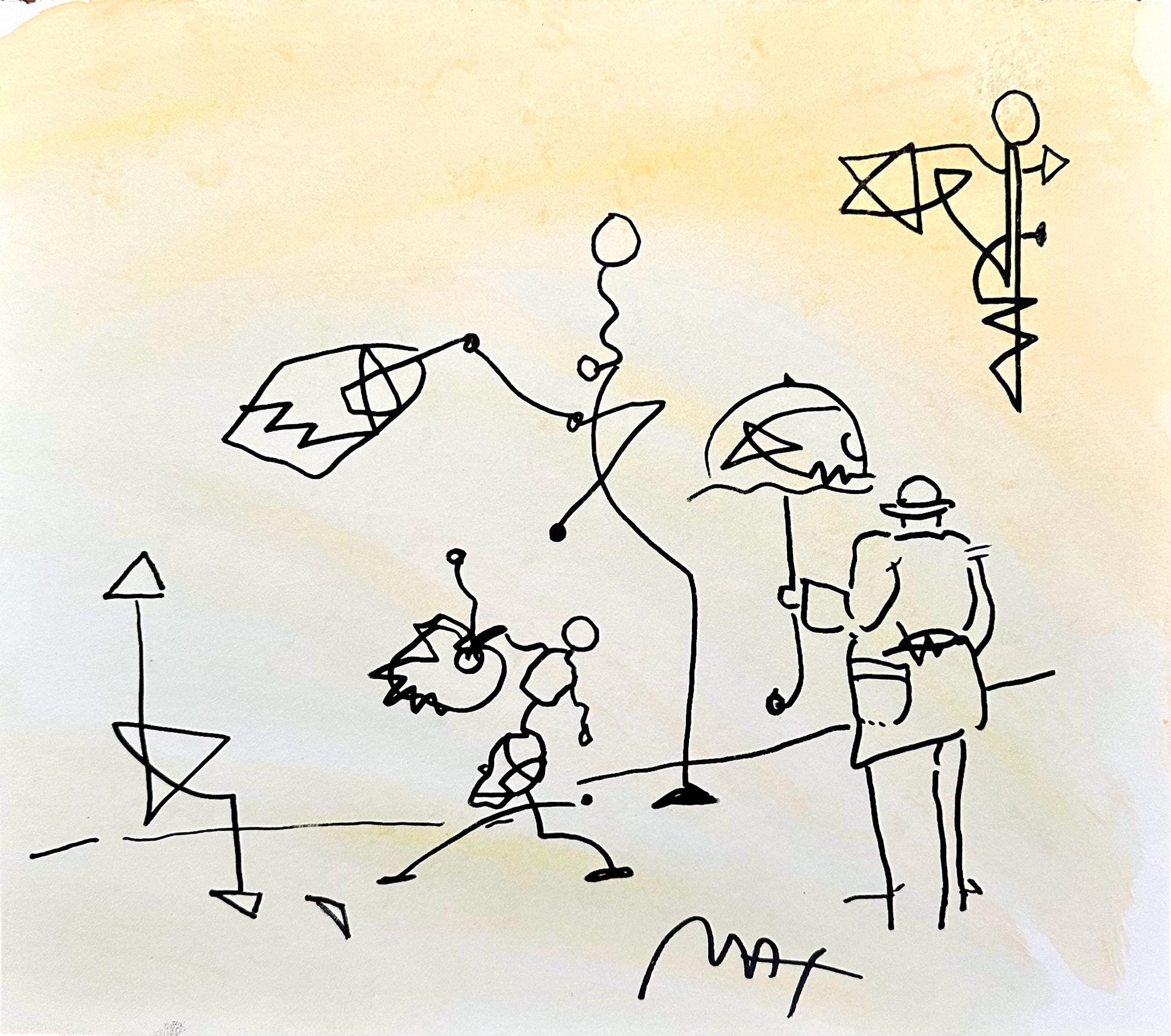 Peter Max, Umbrella Man, Hand Signed, Mixed Media Watercolor And Silkscreen Painting