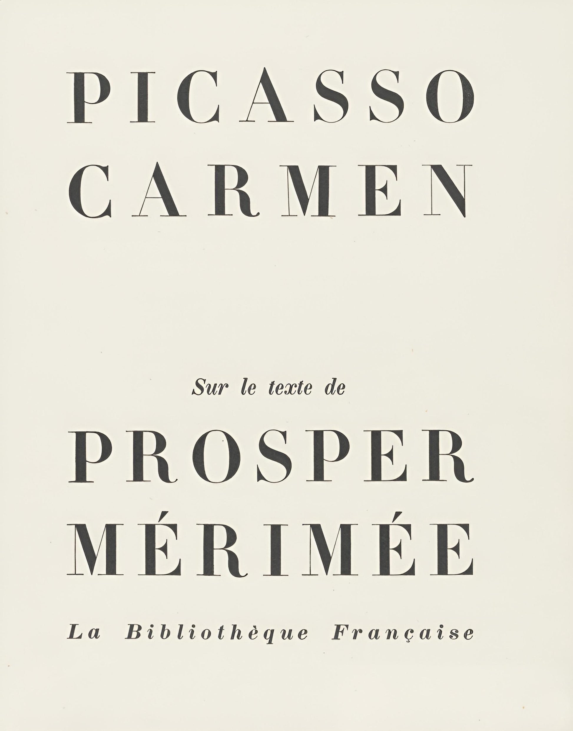 This exquisite engraving by Pablo Picasso (18811973), titled Sans titre (Untitled), from the folio Picasso, Carmen (Picasso, Carmen), originates from the 1949 edition published by La Bibliotheque Francaise, Paris; printed by Atelier Lacouriere-Frelaut, Paris, under the direction of Roger Lacouriere, Paris, October 25, 1949. This compelling composition reflects Picassos mastery of intaglio technique, where incisive line, dramatic contrast, and expressive distortion converge to translate the passionate intensity of Prosper Merimees celebrated narrative into a powerful graphic language.