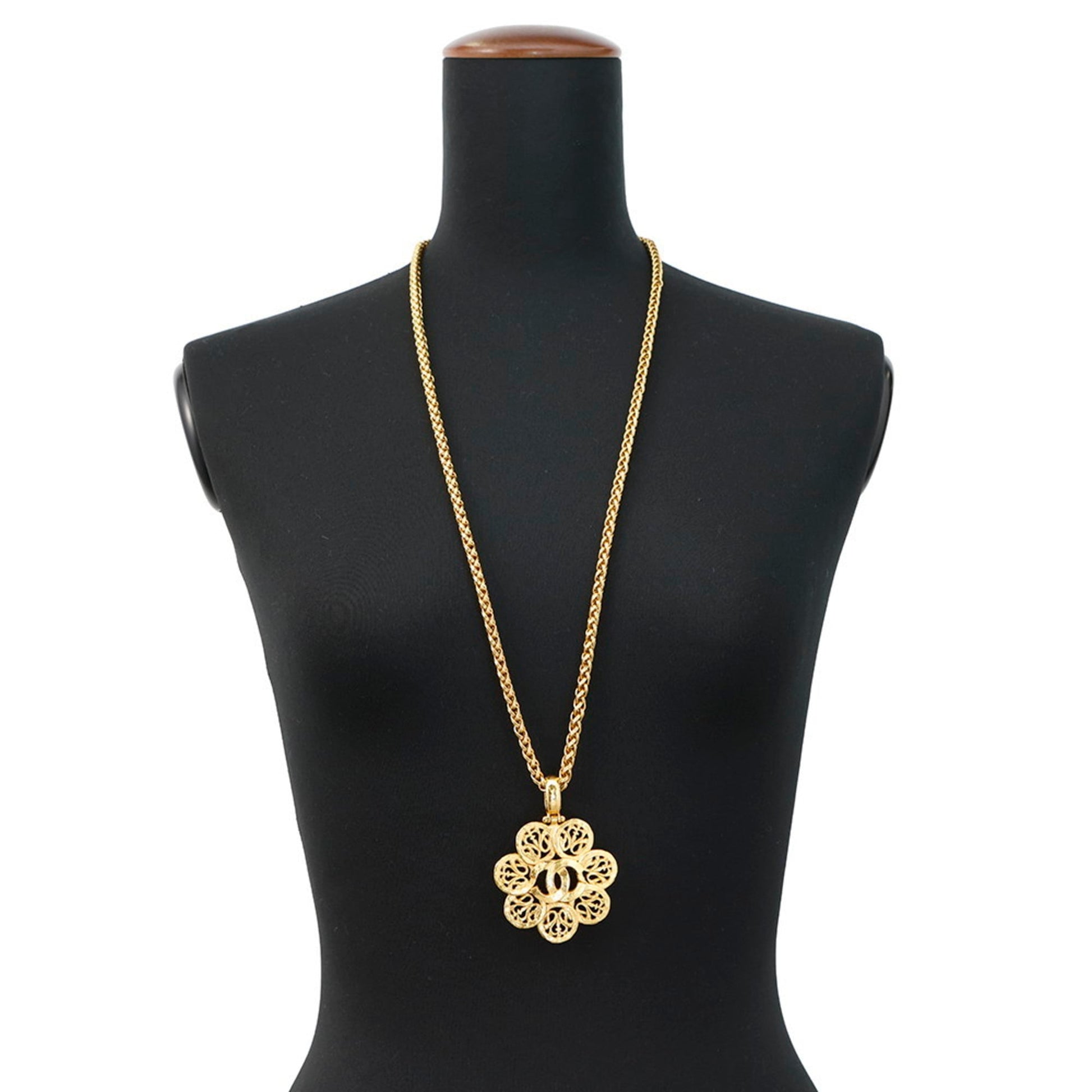 Chanel Coco Mark Flower Motif Metal Necklace 95A Chanel