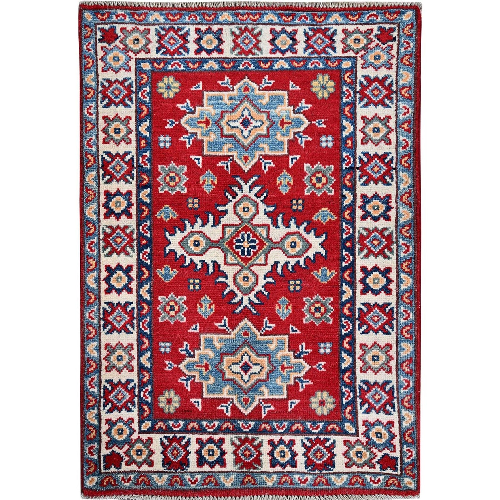 2'2"X3' Red Kazak With Geometric Pattern Soft Wool Hand Knotted Mat Rug