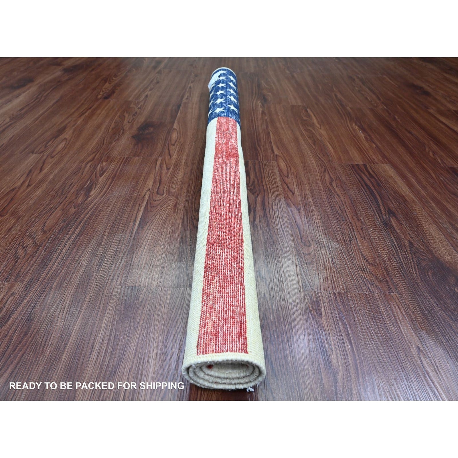 2'5"X4' Red All Wool American Flag Hand Knotted Peshawar Wall Hanging Rug