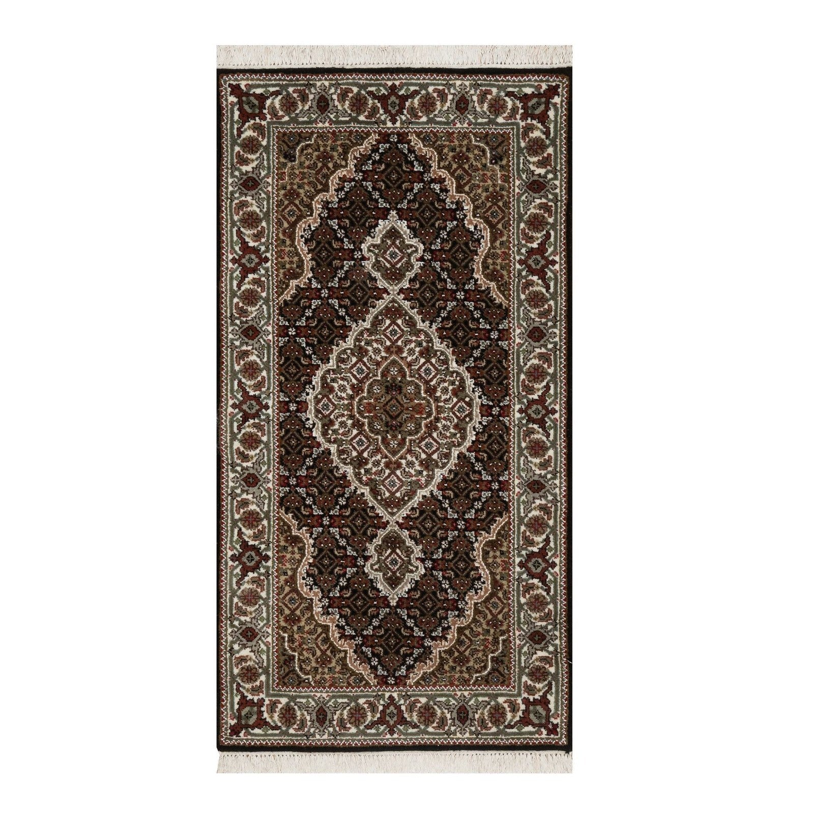 2'5"X4'8" Black Wool Rug Tebraz Mahi With Medallion Design Hand Knotted