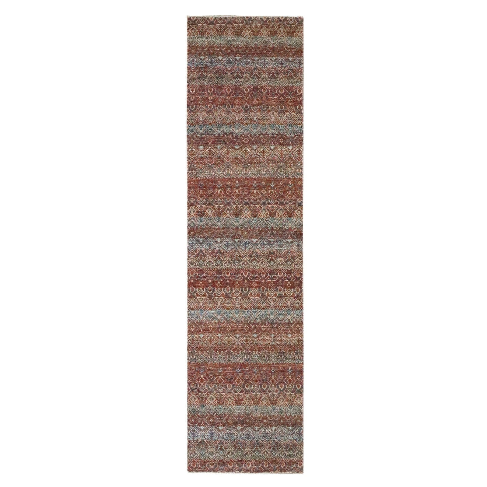 2'6"X10'2" Red Small Geometric Pattern Soft Wool Hand Knotted Runner Rug