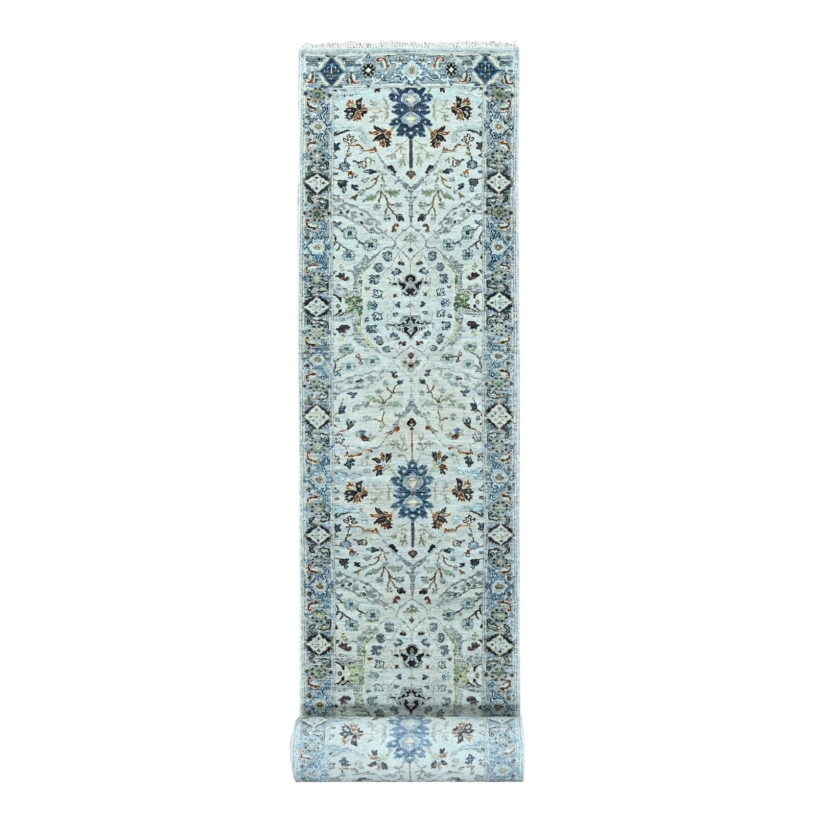 2'6"X23'10" Gray Oushak Floral Motifs Wool Xl Runner Hand Knotted Rug