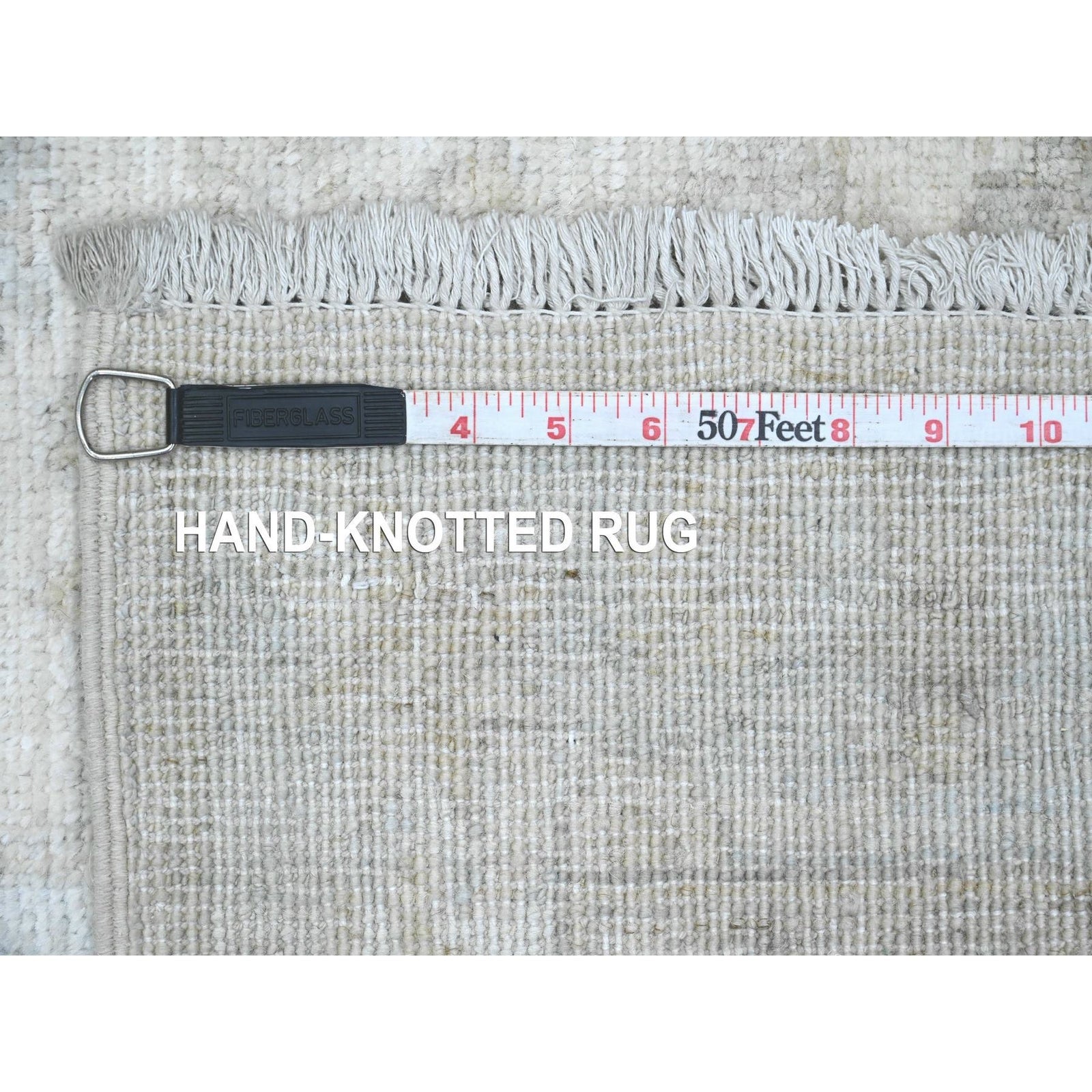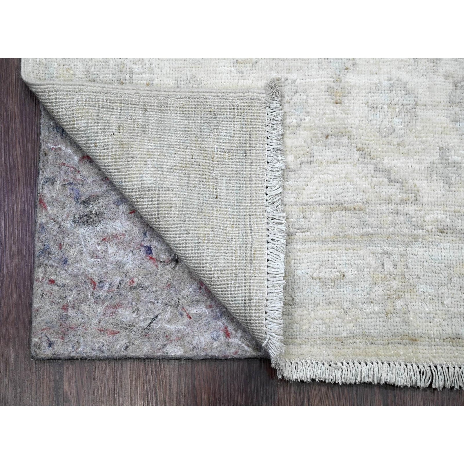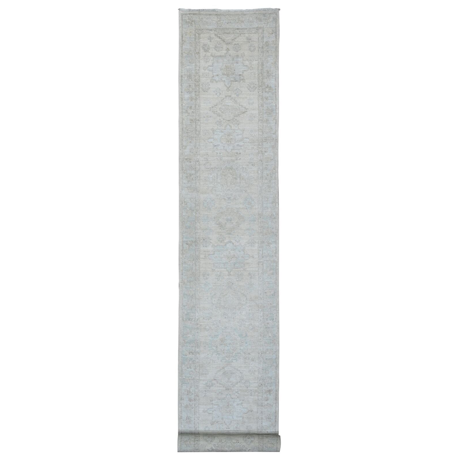 2'7"X18'9" White Wash Peshawar Leaf Design Hand Knotted Wool Runner Rug