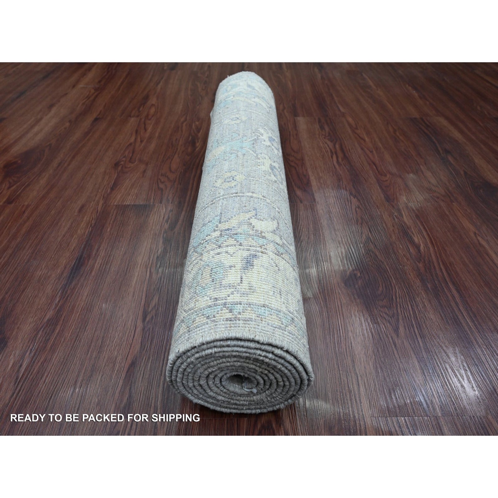 2'8"X10' Gray Washed Out Peshawar Leaf Motif Hand Knotted Wool Runner Rug