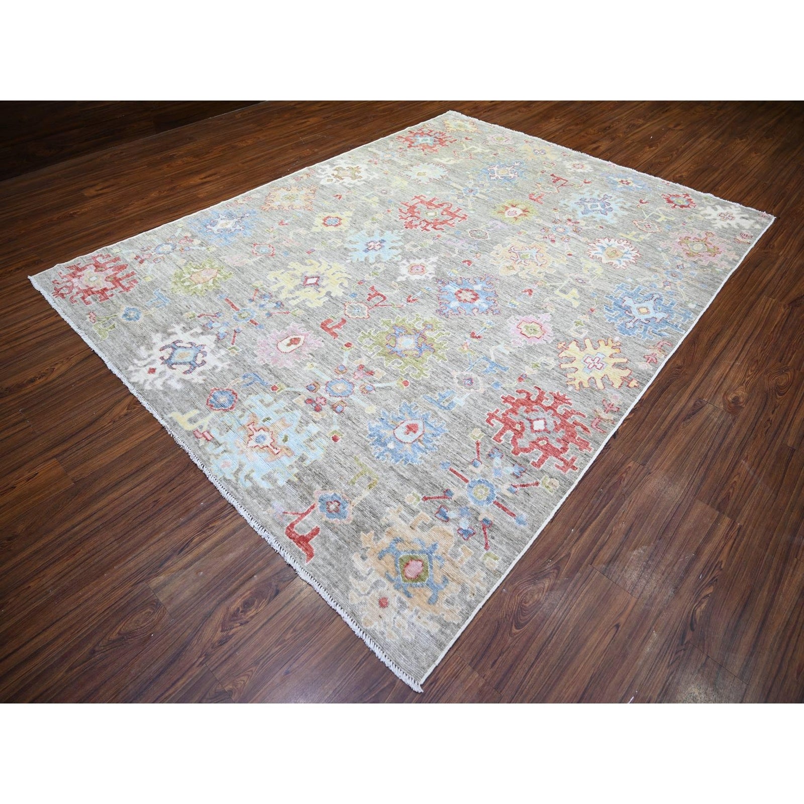 8'1"X10'8" Taupe Afghan Angora Oushak Soft Wool Hand Knotted Oriental Rug