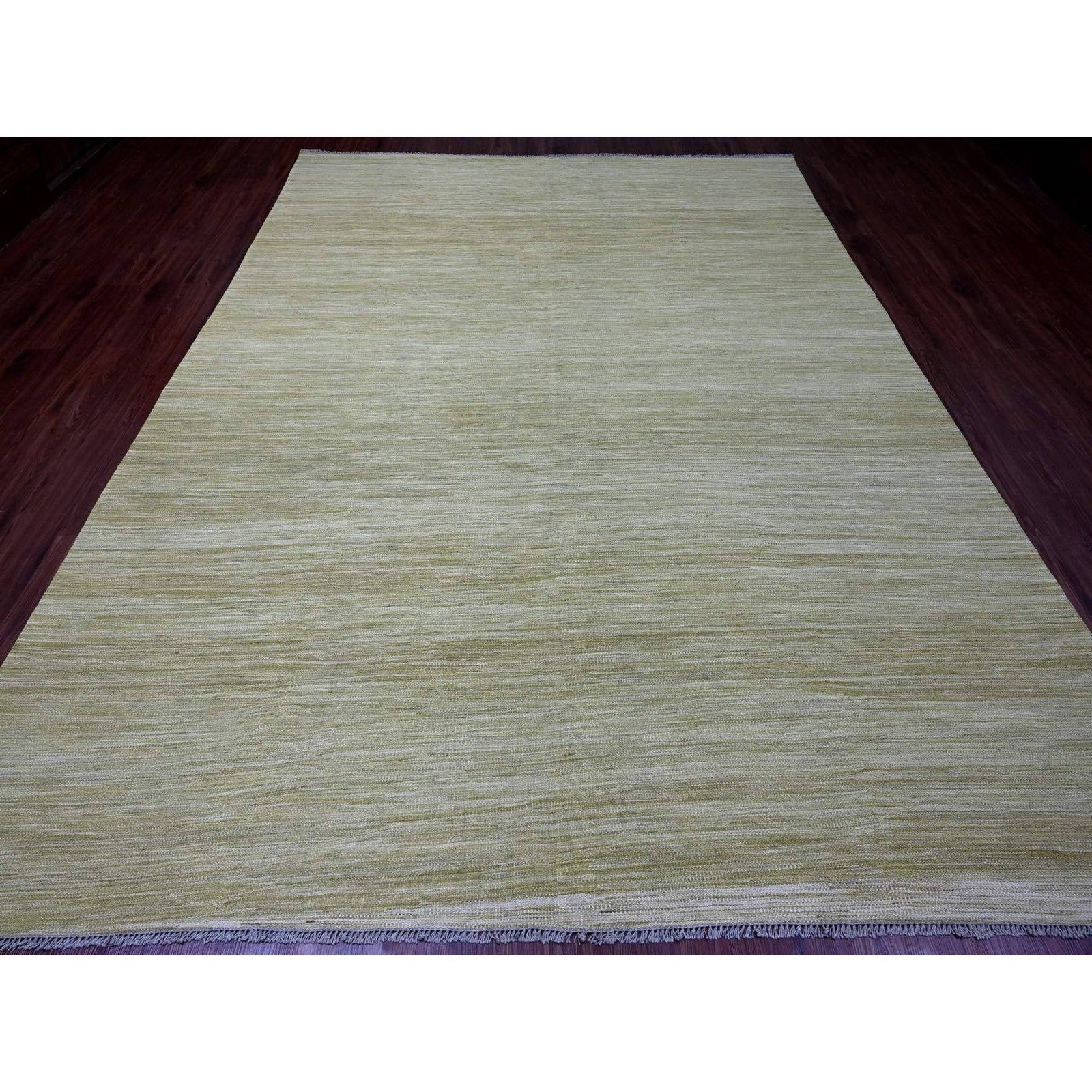 8'8"X12' Green Solid Design Hand Woven Hand Spun Wool Flat Weave Rug