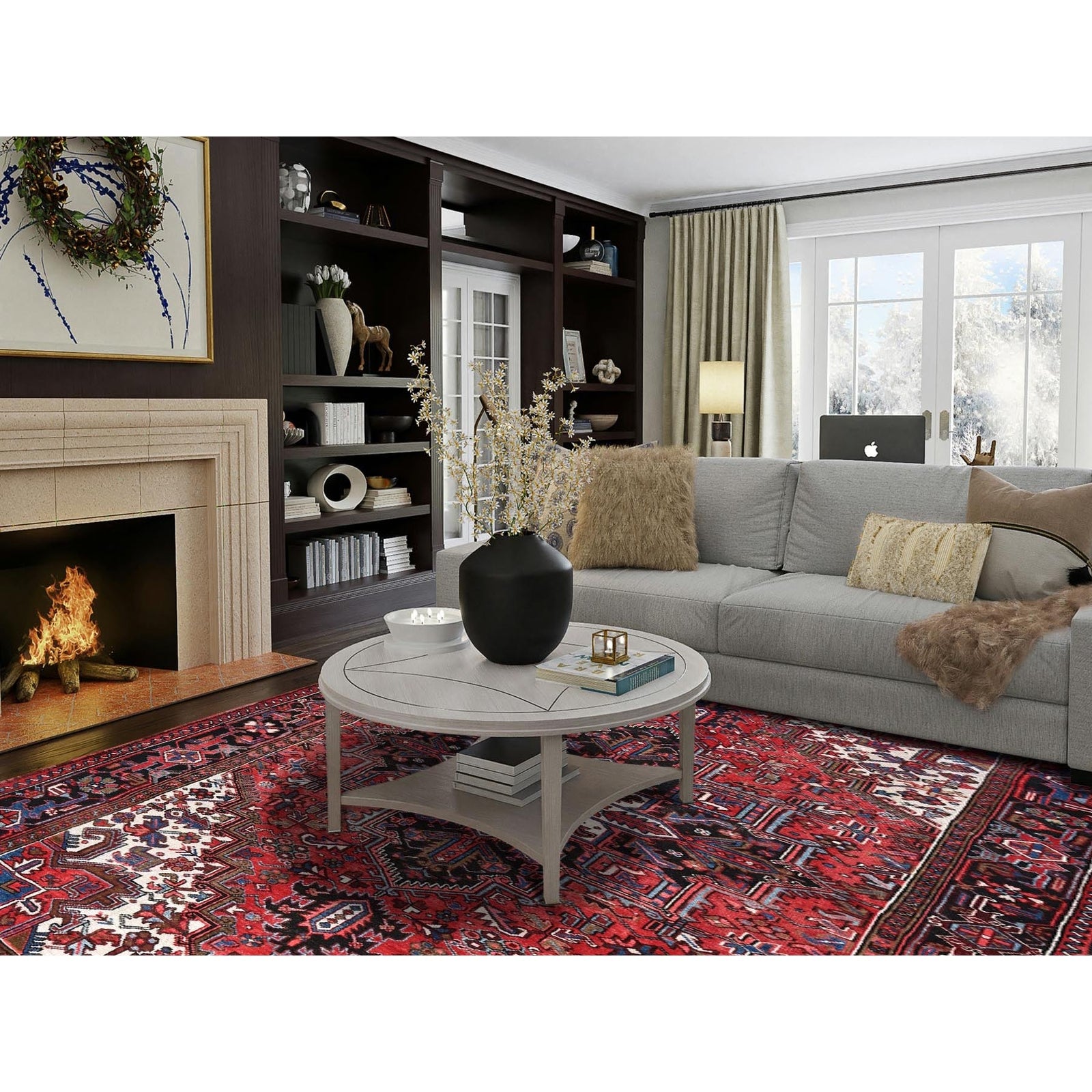 8'X11'3" Red Semi Antique Zoroastrian Heris Even Wear Hand Knotted Wool