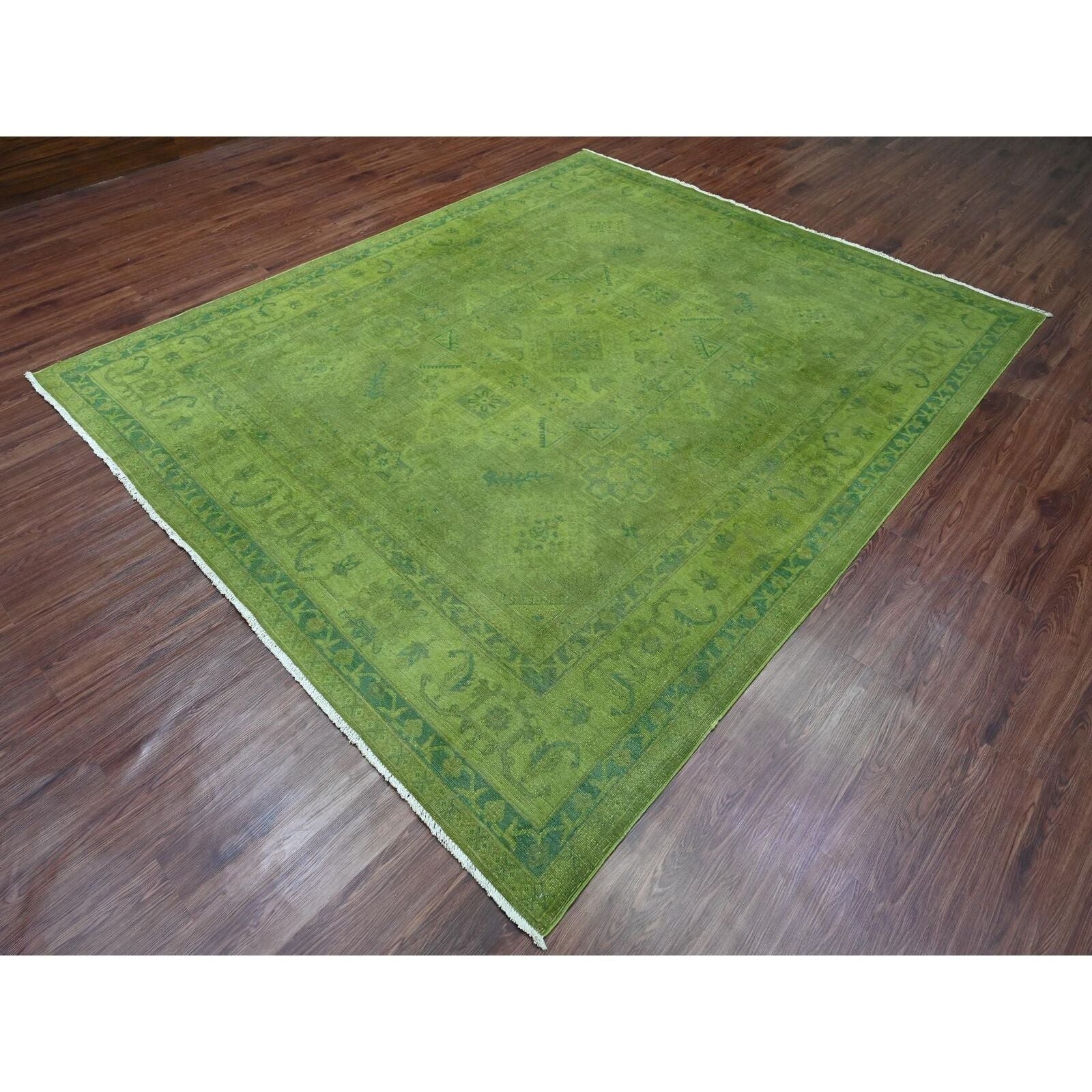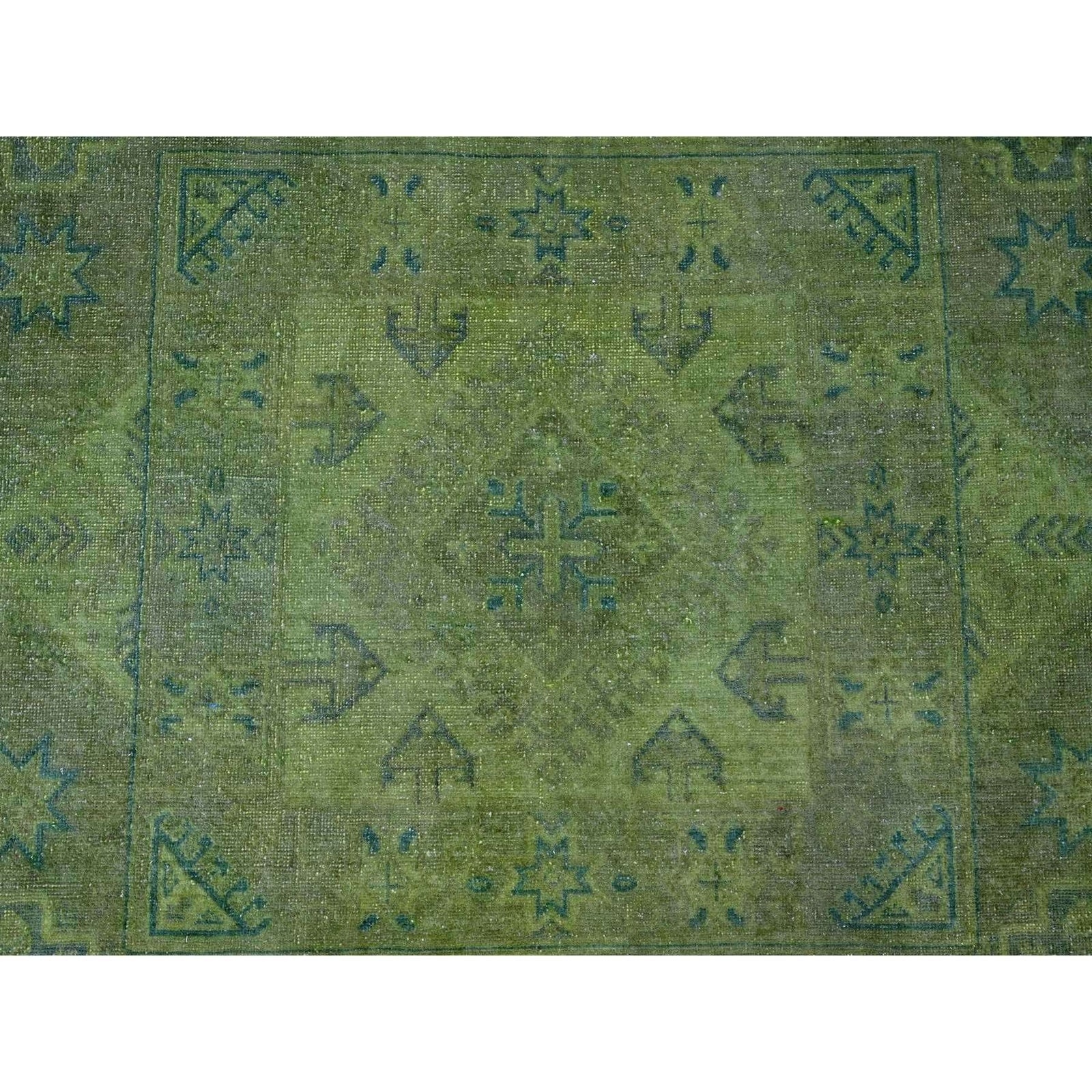 8'X9'6" Green Overdyed Kazak Geometric Pattern Hand Knotted Pure Wool Rug