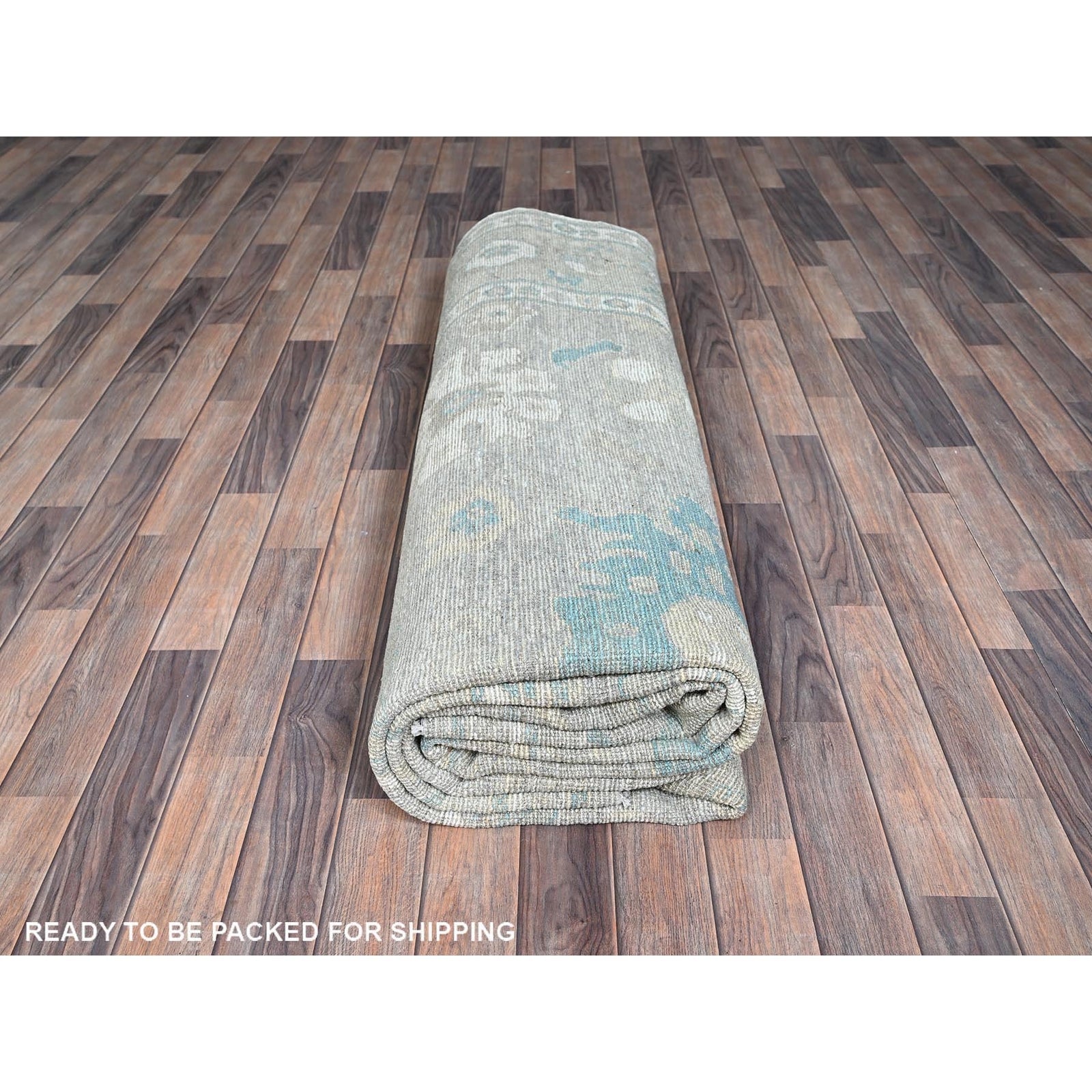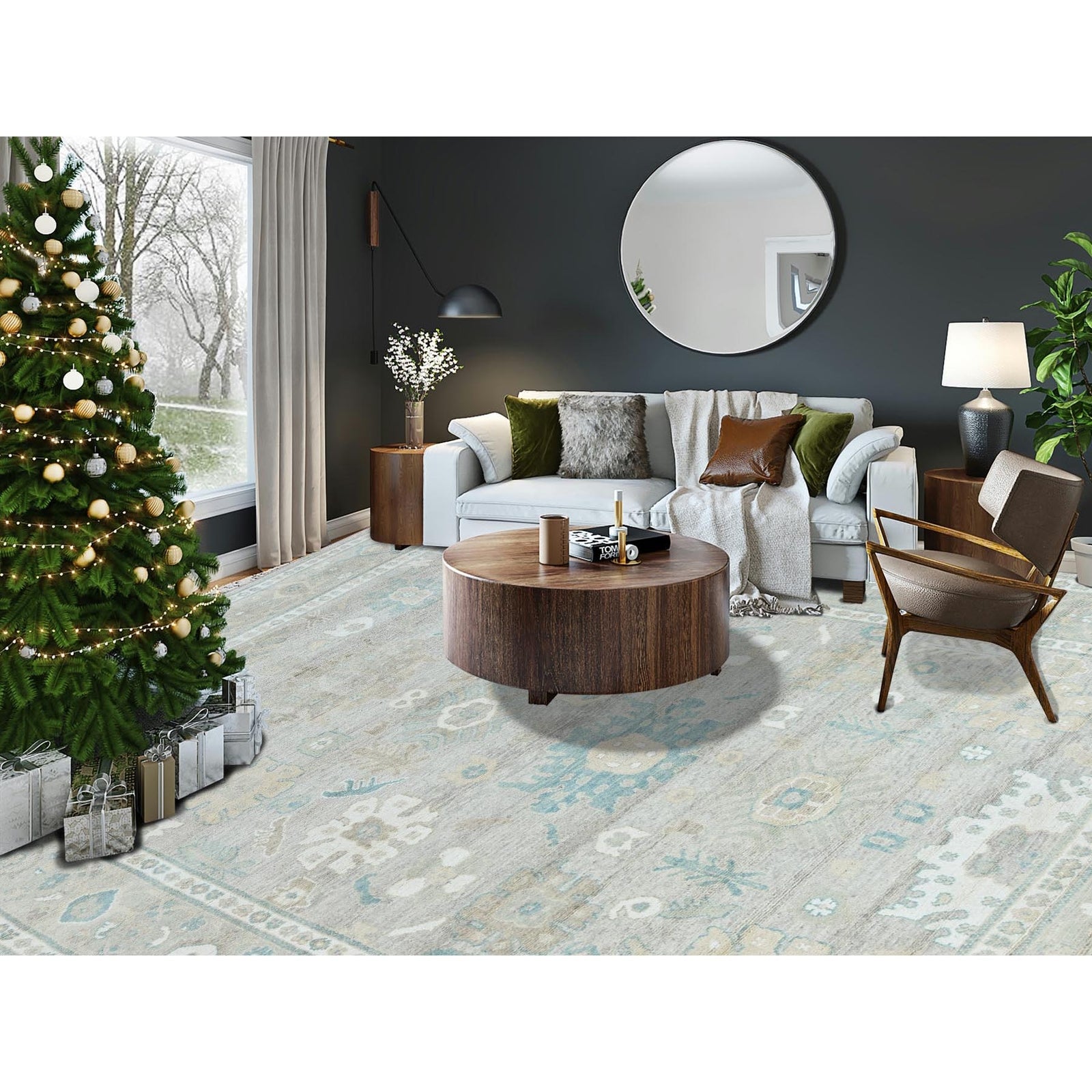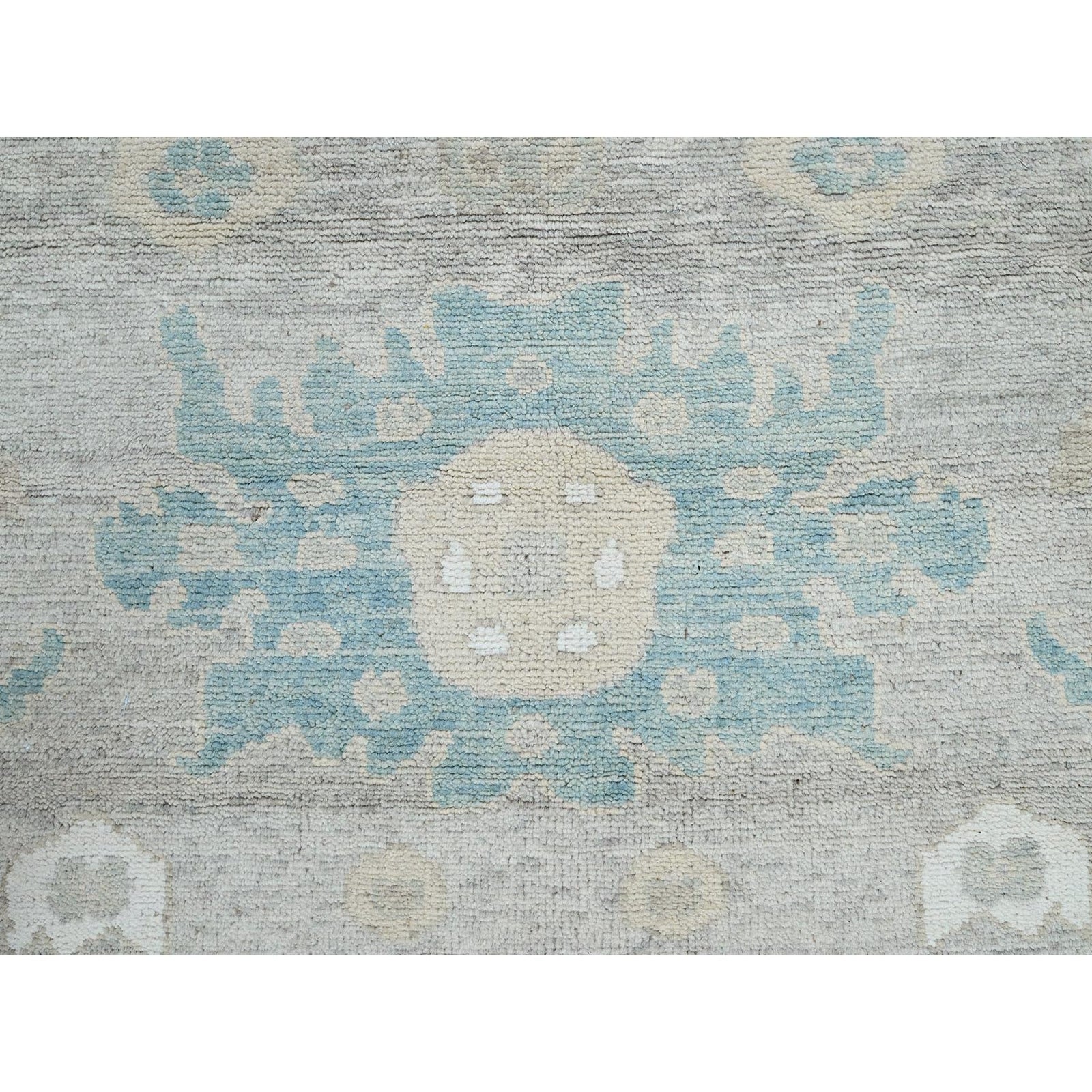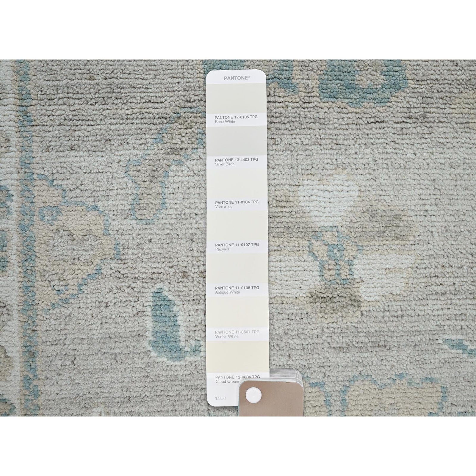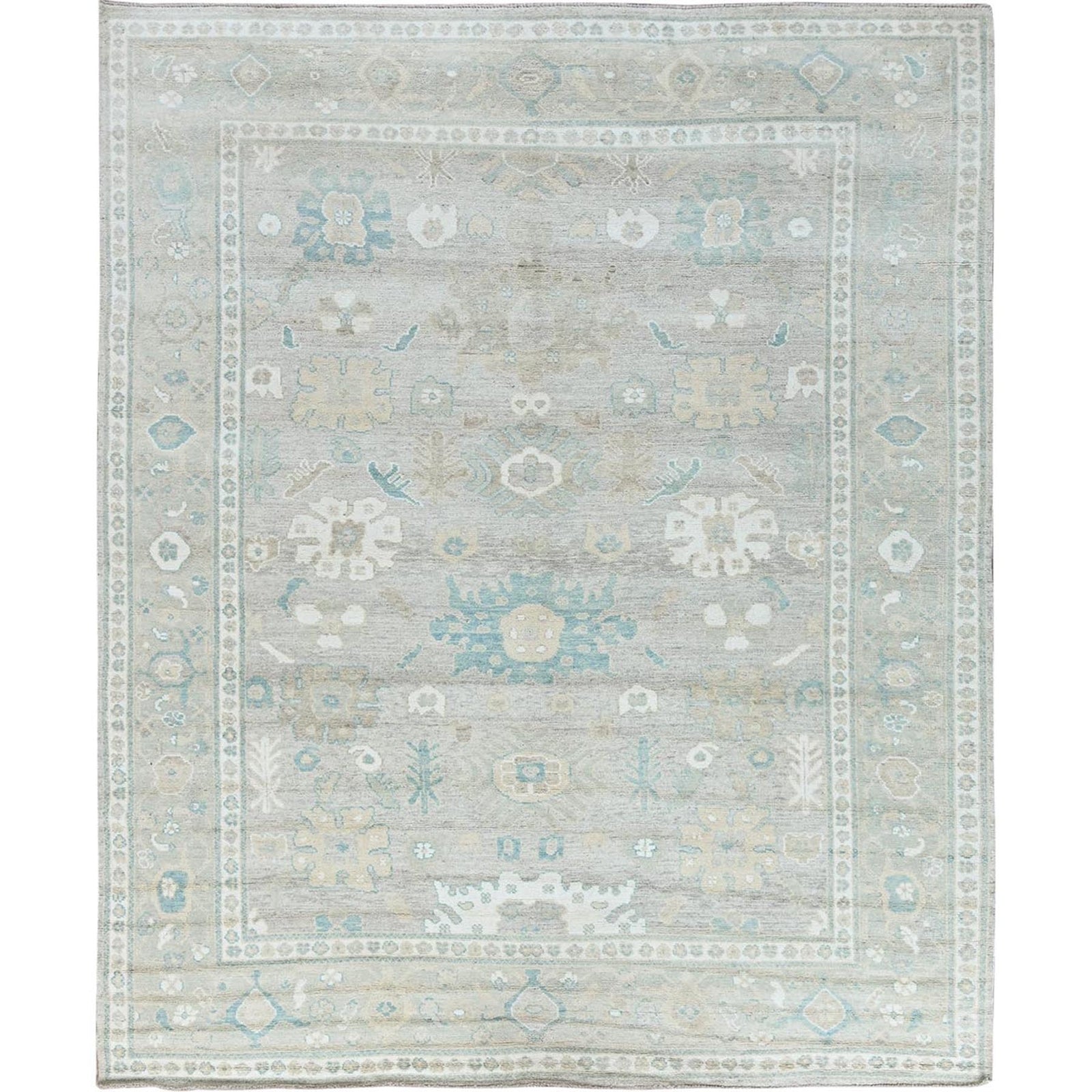 9'2"X11'10" Oyster Gray Afghan Oushak Leaf Design All Wool Hand Knotted Rug