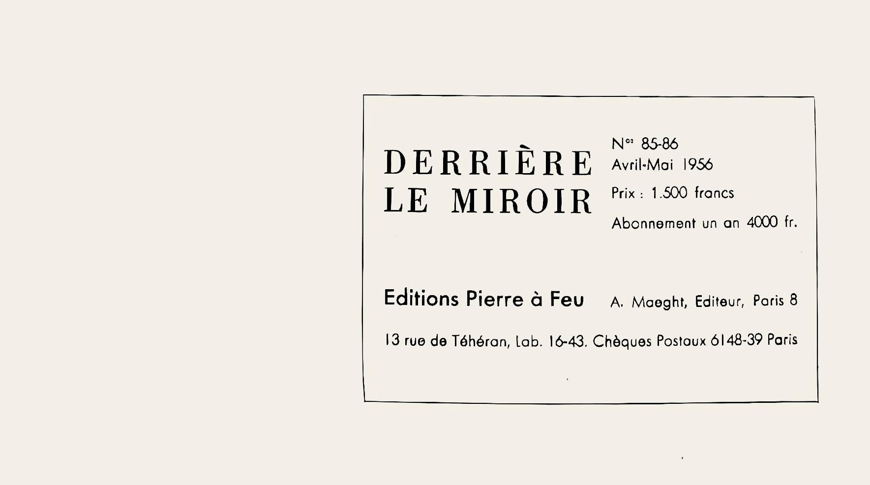 The name, Derrire le Miroir was suggested by Jacques Kober, manager of Galerie Maeght.