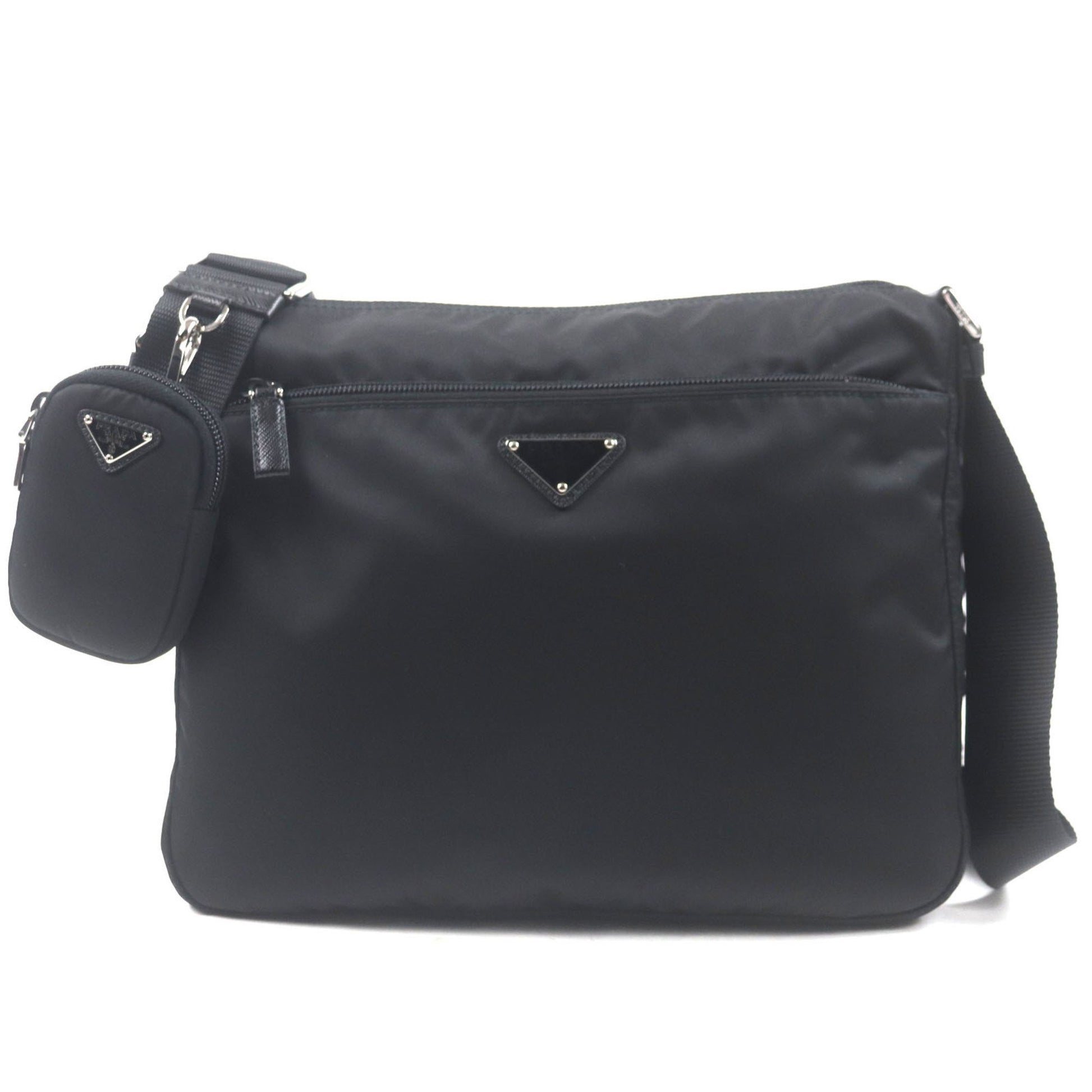 Prada 1Bc421 Saffiano Leather And Re-Nylon Nylon Shoulder Bag With Triangle Logo Plaque