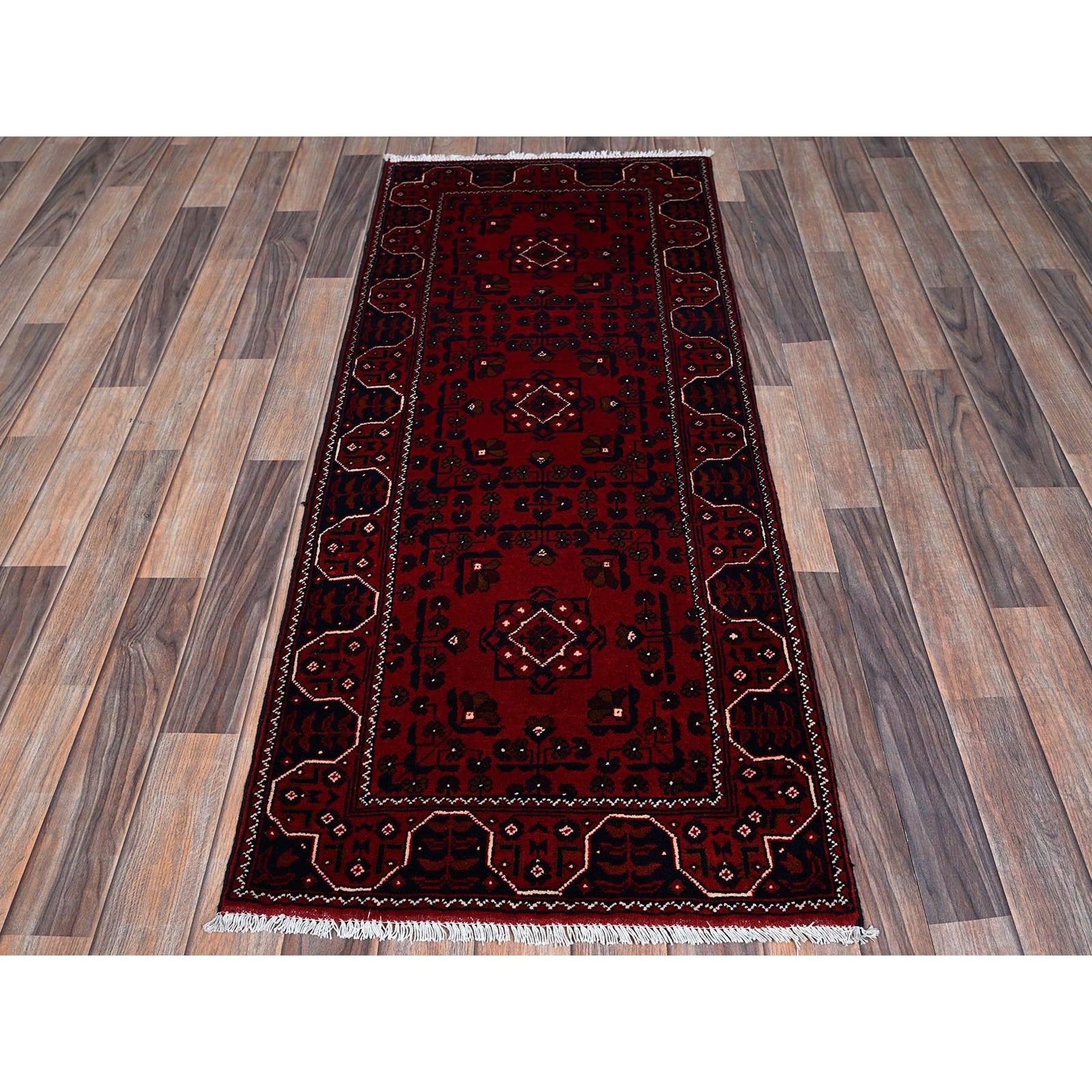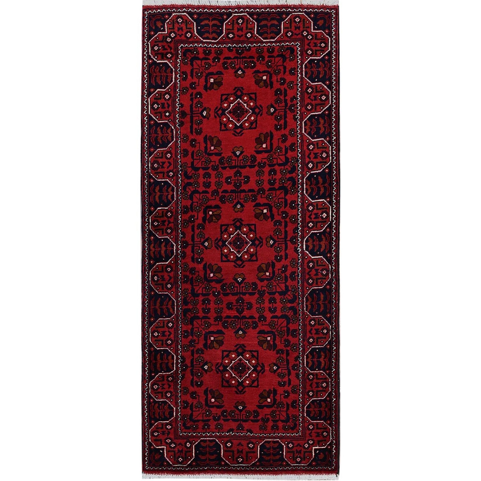2'2"X5'4" Red Afghan Khamyab Tribal Design All Wool Hand Knotted Runner Rug