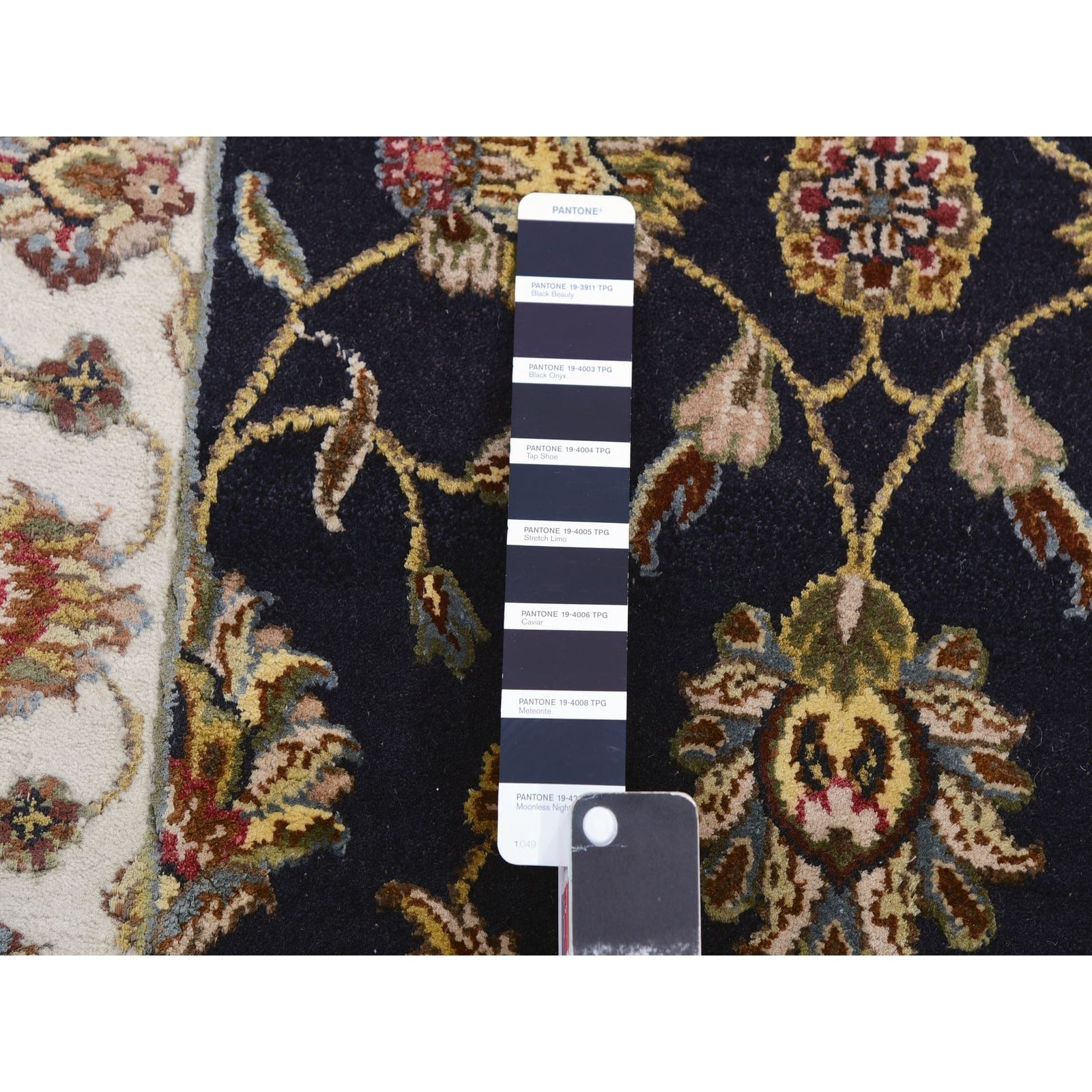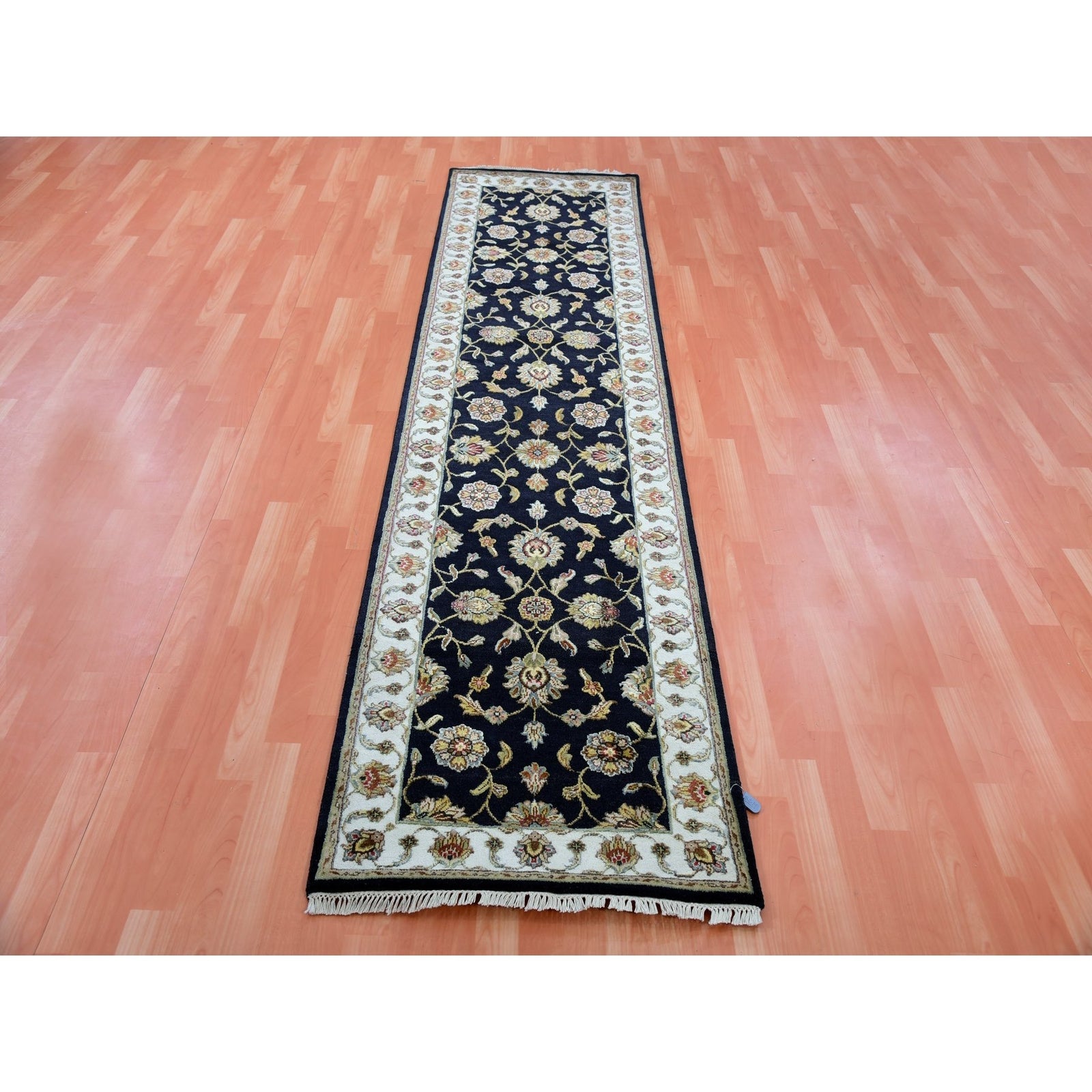 2'6"X10' Oyster Black Rajasthan Design Wool Silk Hand Knotted Runner Rug