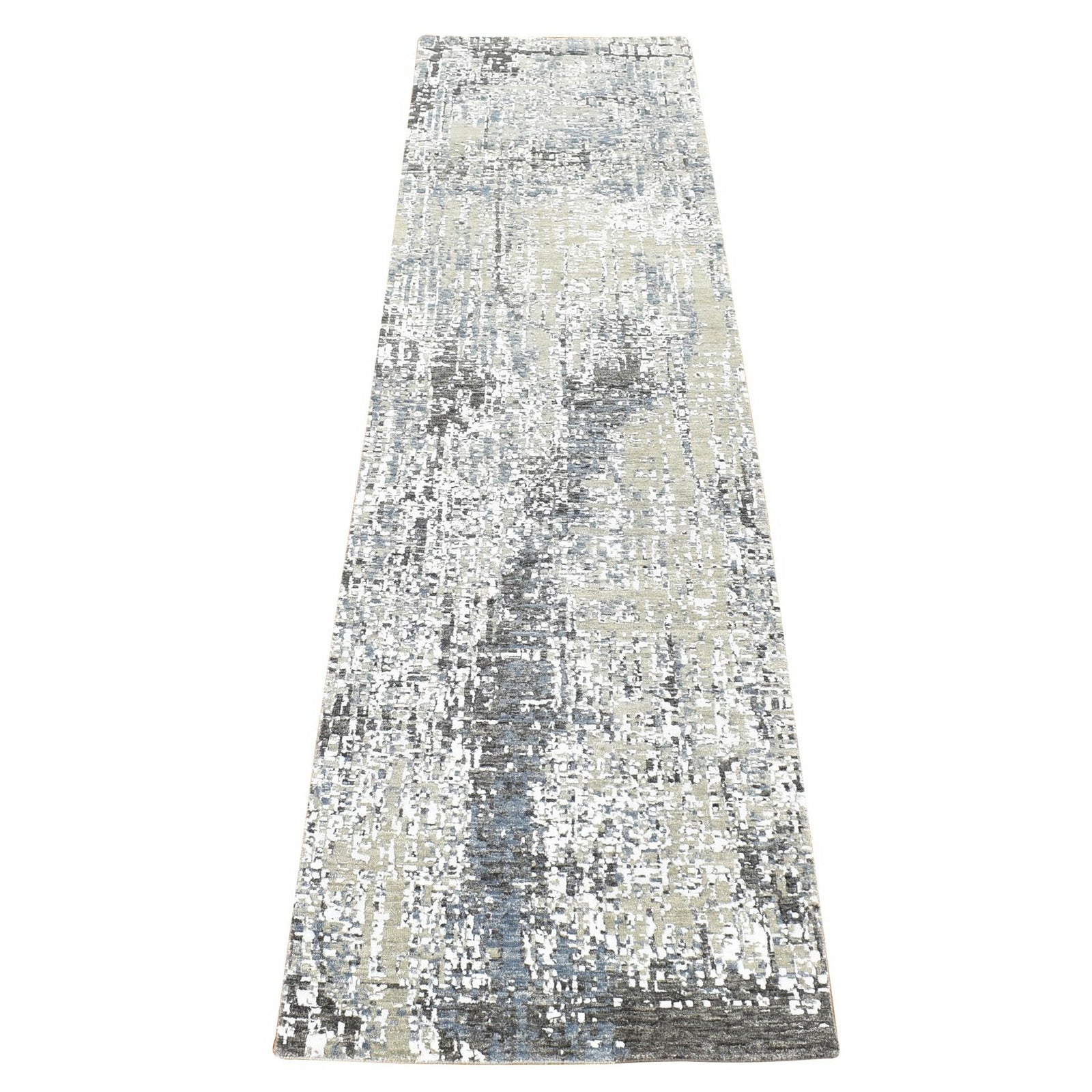 2'6"X10'1" Beige Modern Abstract Design Hand Knotted Pure Wool Runner Rug