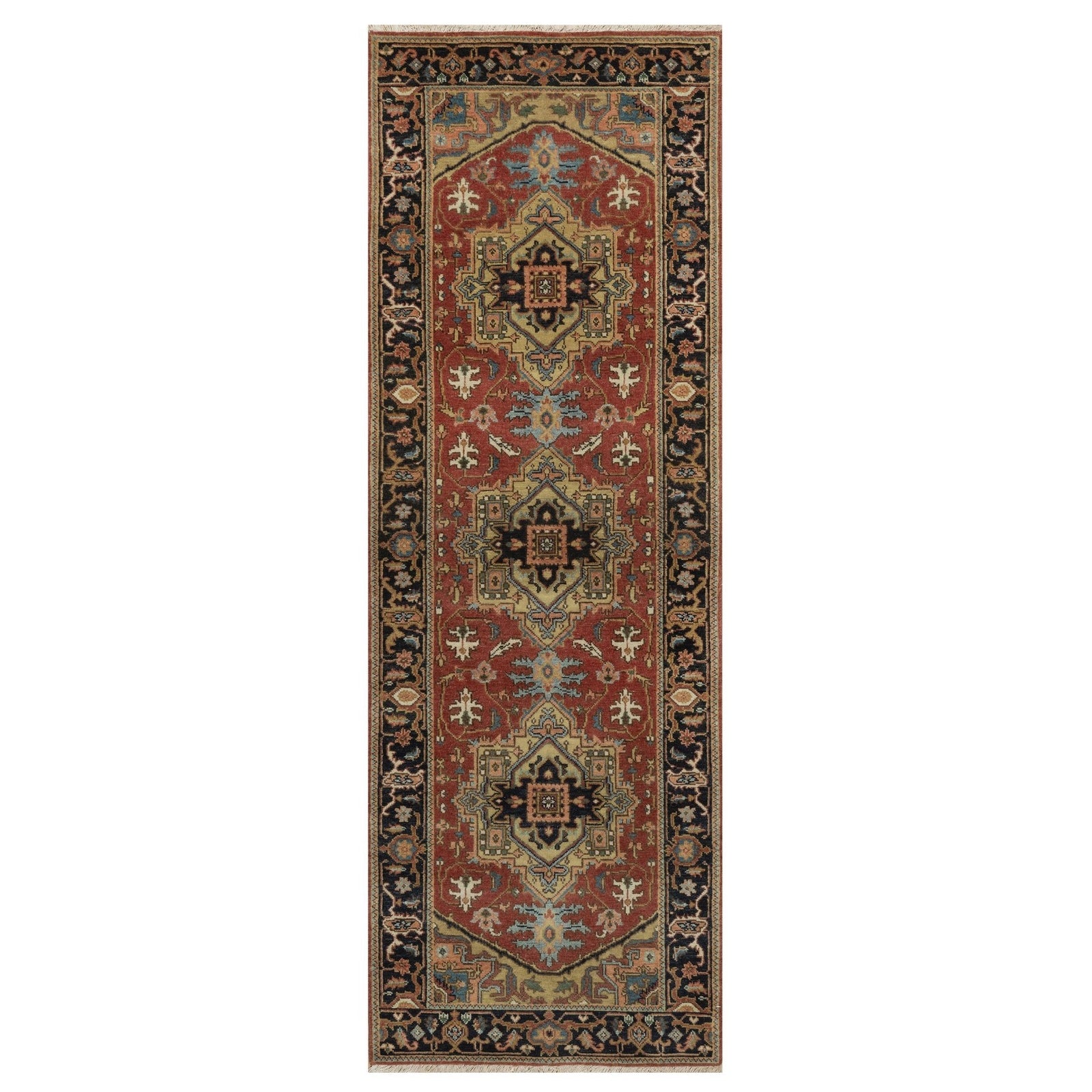2'7"X7'10" Red Heris Revival New Zealand Wool Hand Knotted Runner Rug