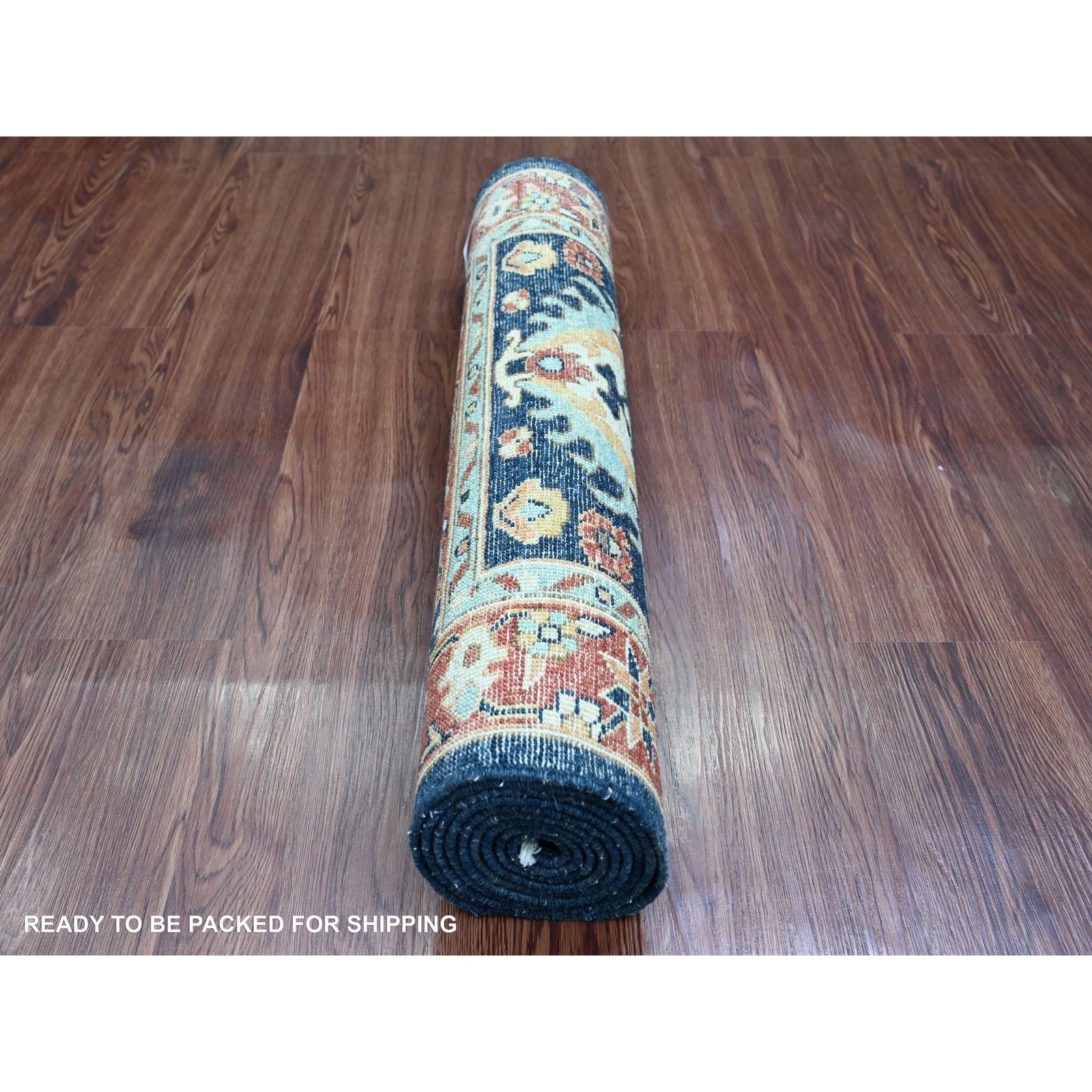 2'7"X8' Yale Blue Peshawar Karjihooz Design Wool Hand Knotted Runner Rug