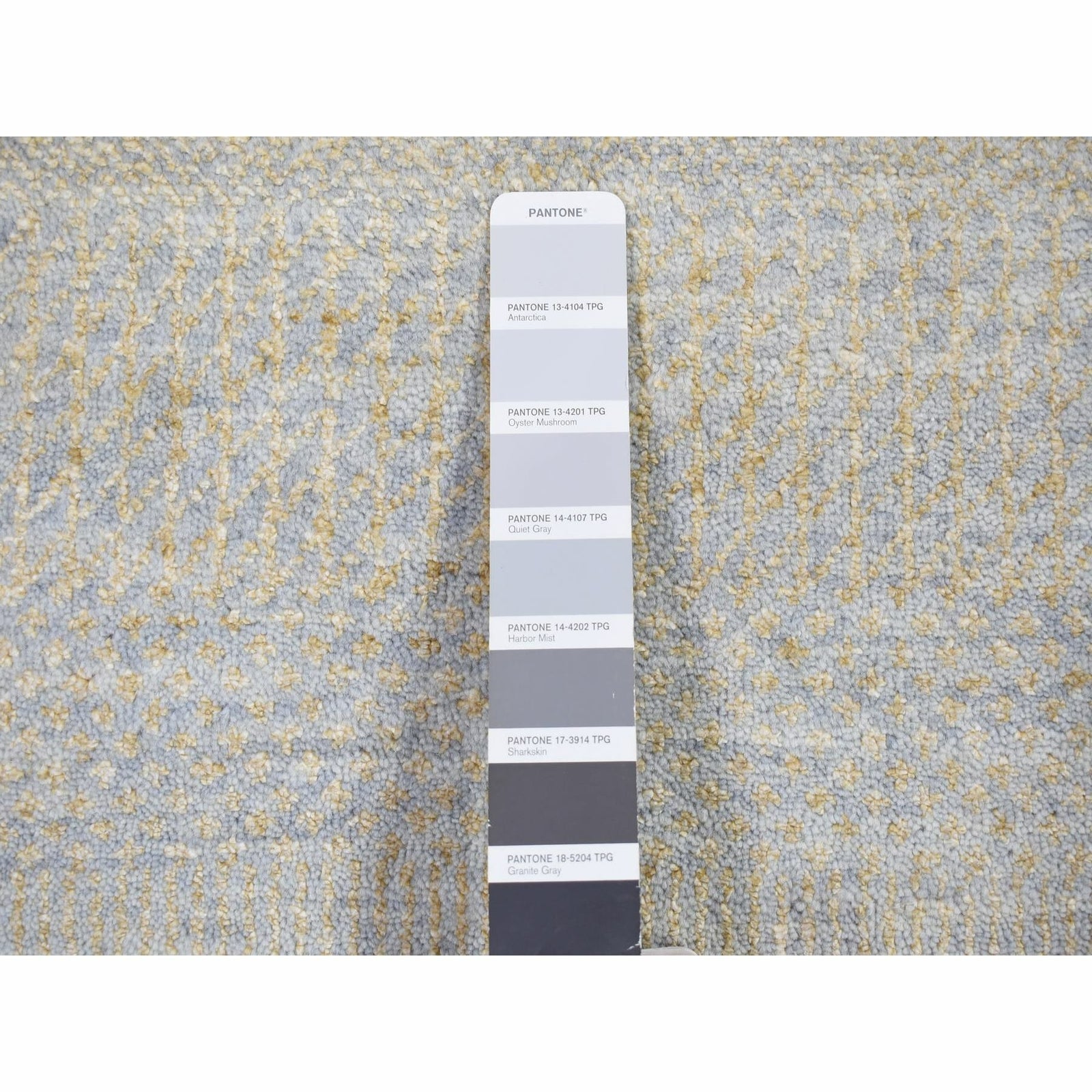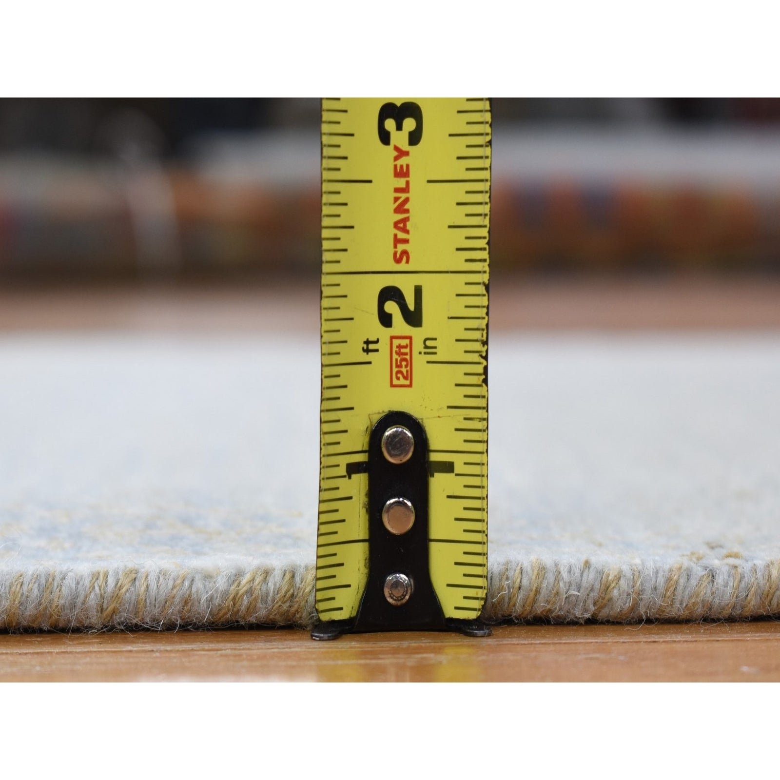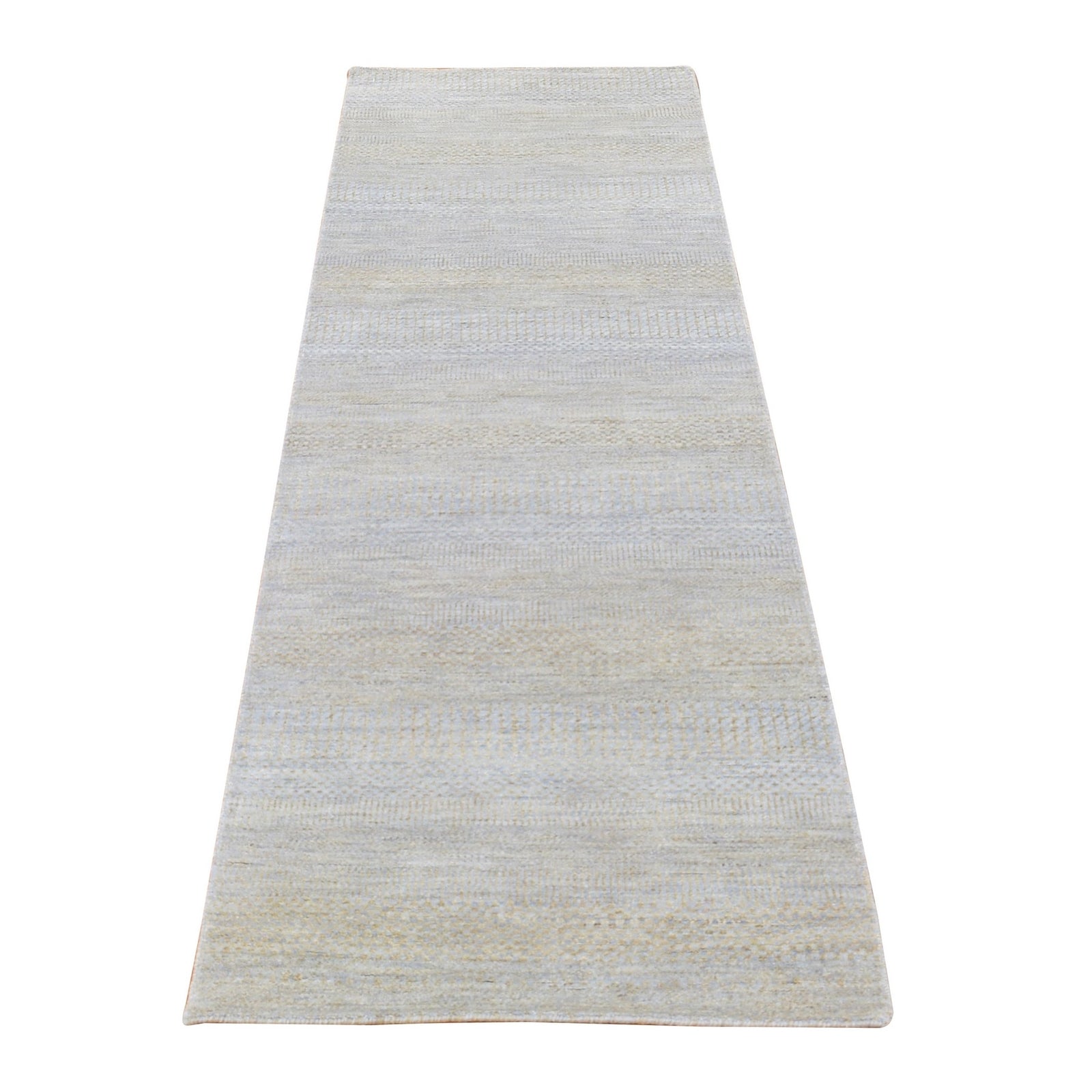2'8"X9'1" Gray Modern Grass Design Hand Knotted Wool And Silk Runner Rug