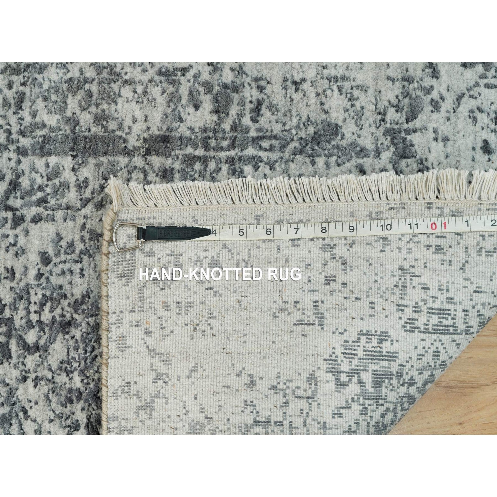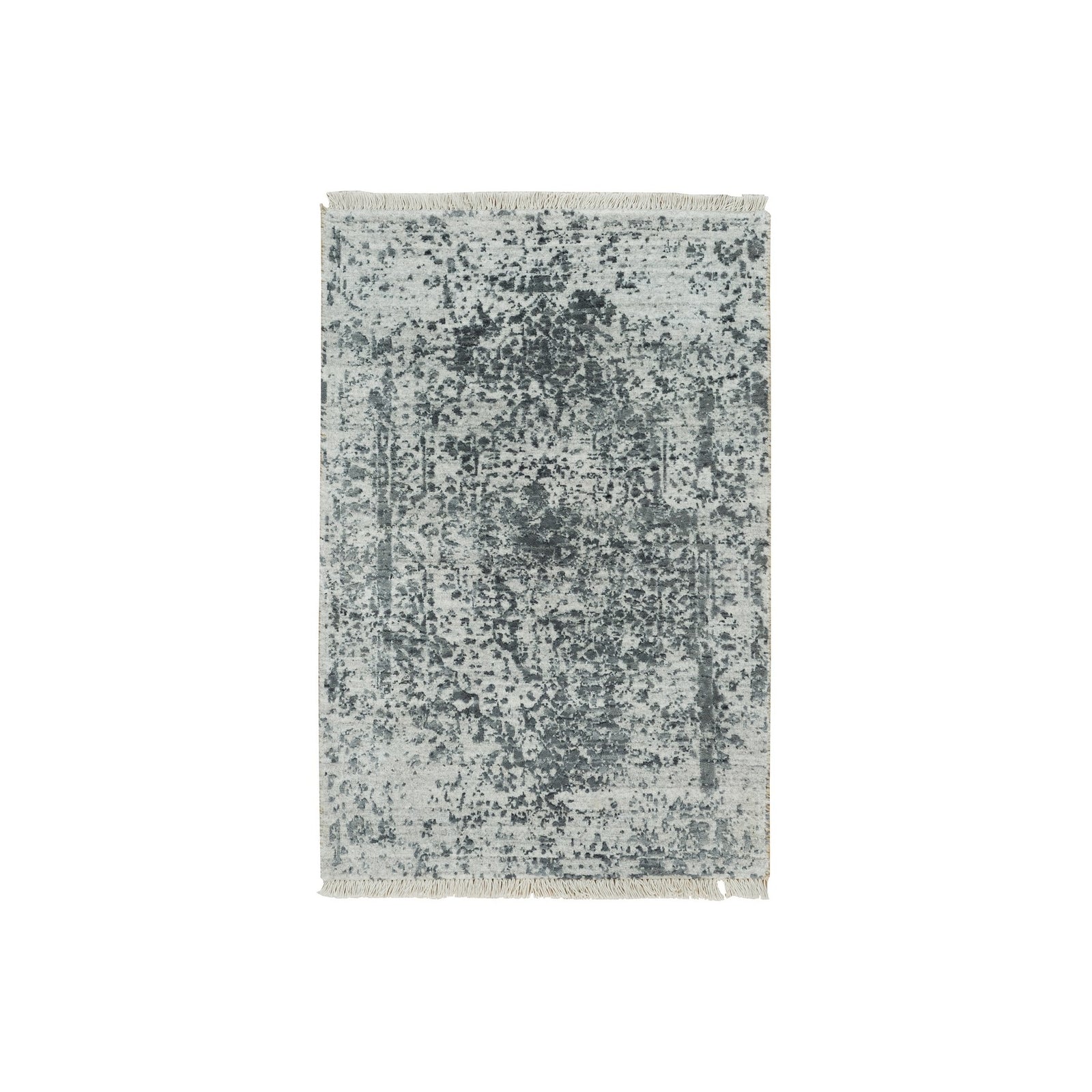 2'X3' Gray Broken Zoroastrian Hand Knotted Design Wool And Silk Mat Rug
