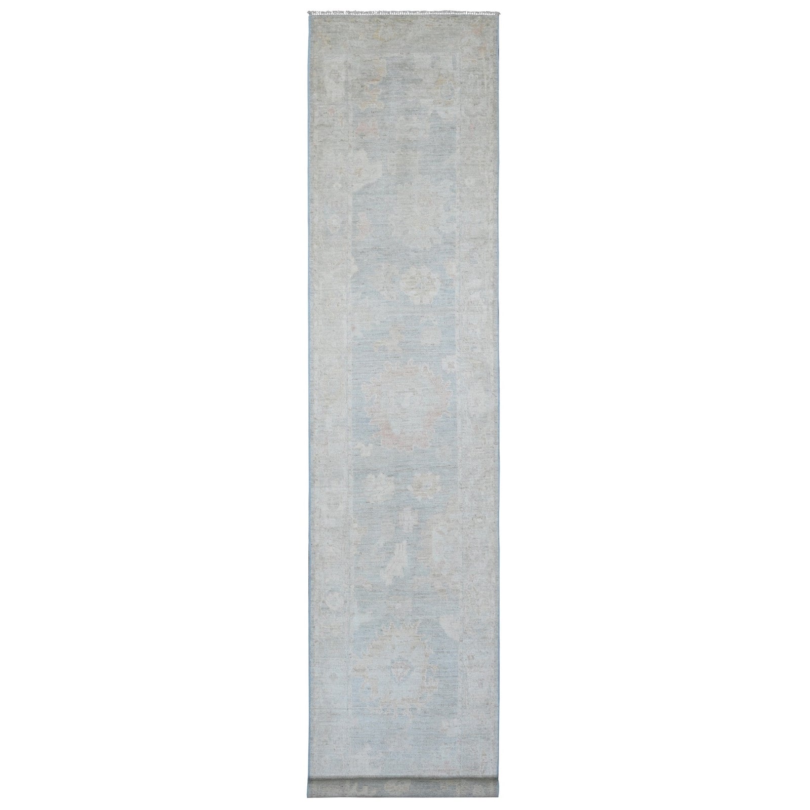 3'1"X15'6" Gray Angora Oushak Leaf Design Hand Knotted Wool Runner Rug