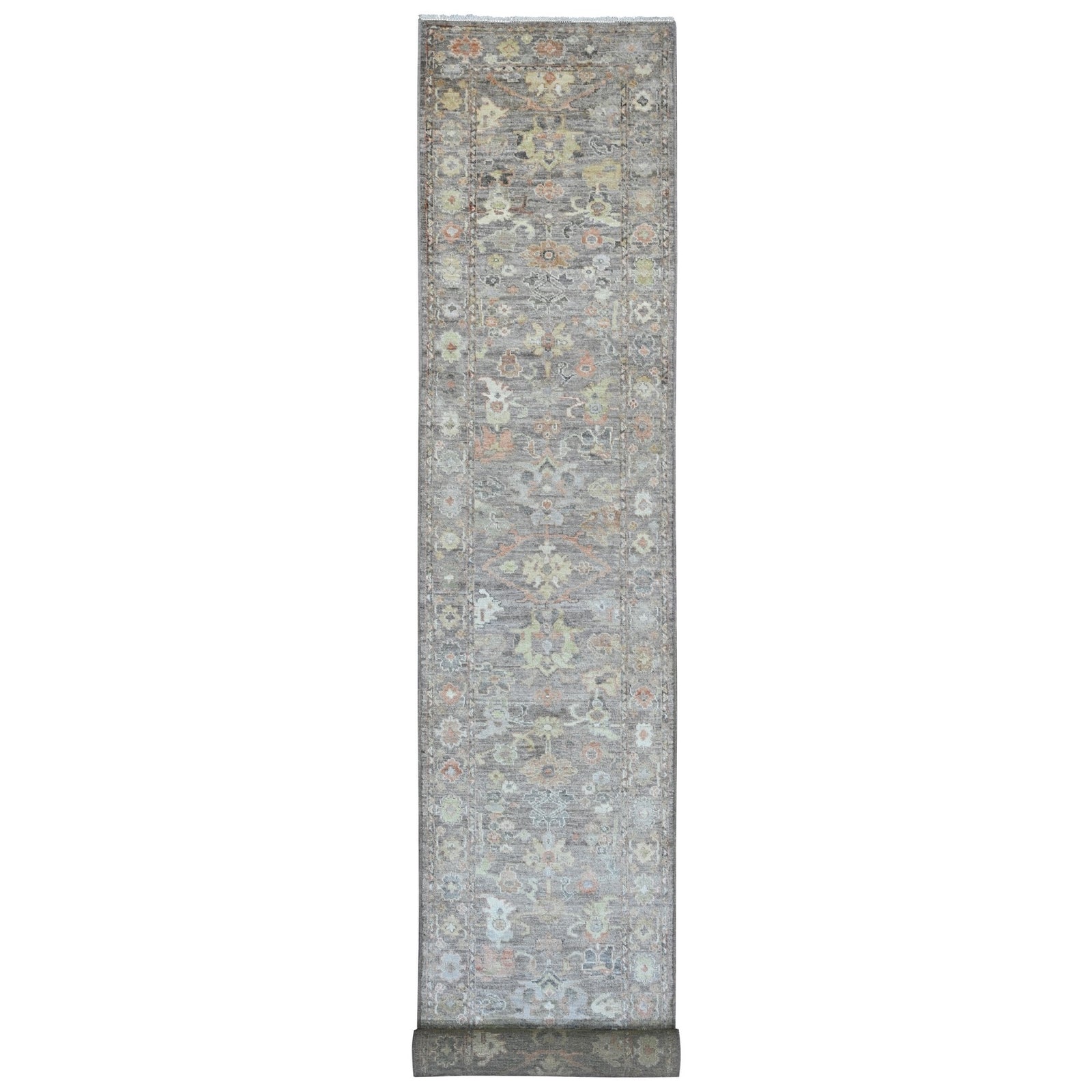 3'2"X23'7" Brown Hand Knotted Angora Oushak Leaf Design Wool Runner Rug