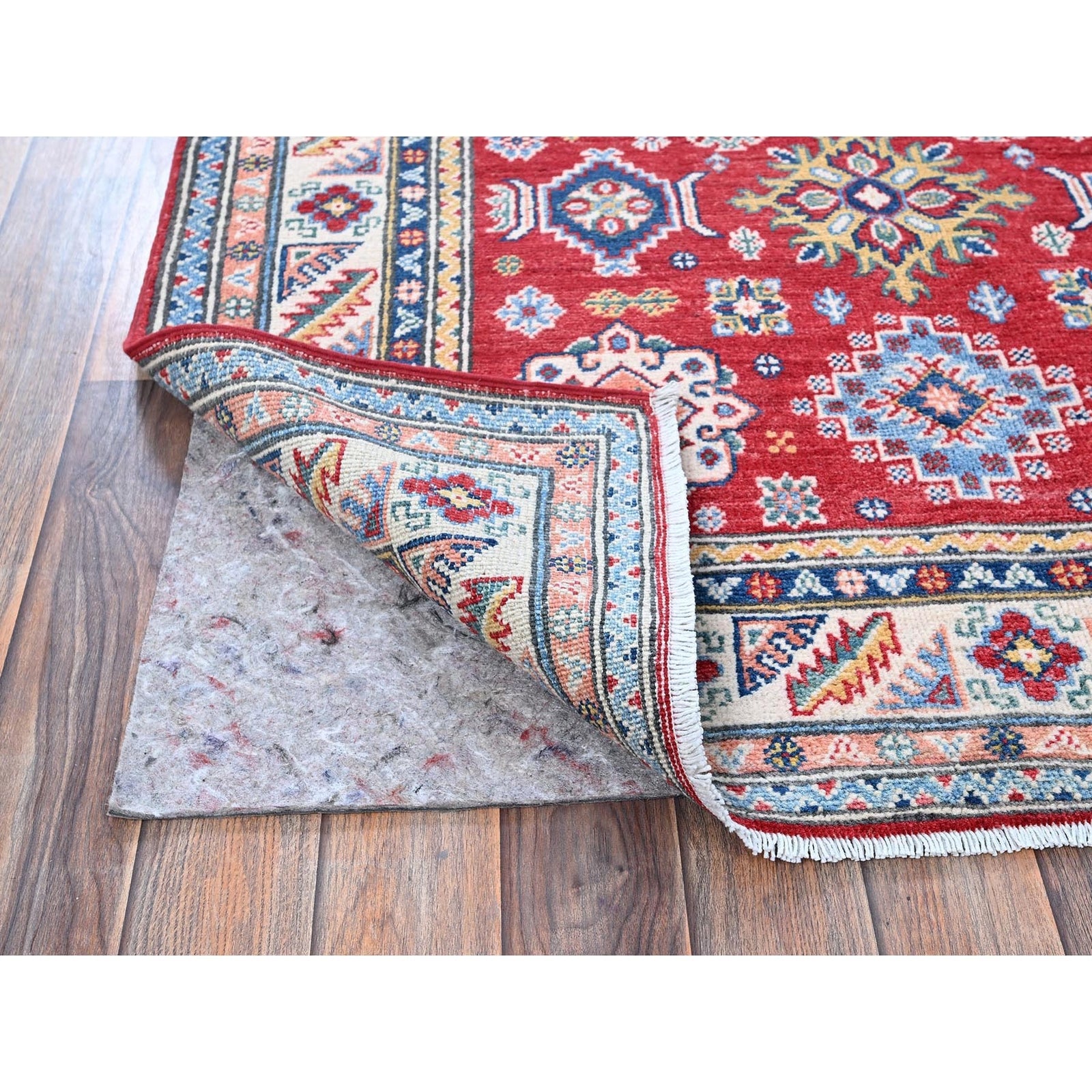 4'X6' Red Kazak With Geometric Medallions Design Soft Wool Hand Knotted Rug