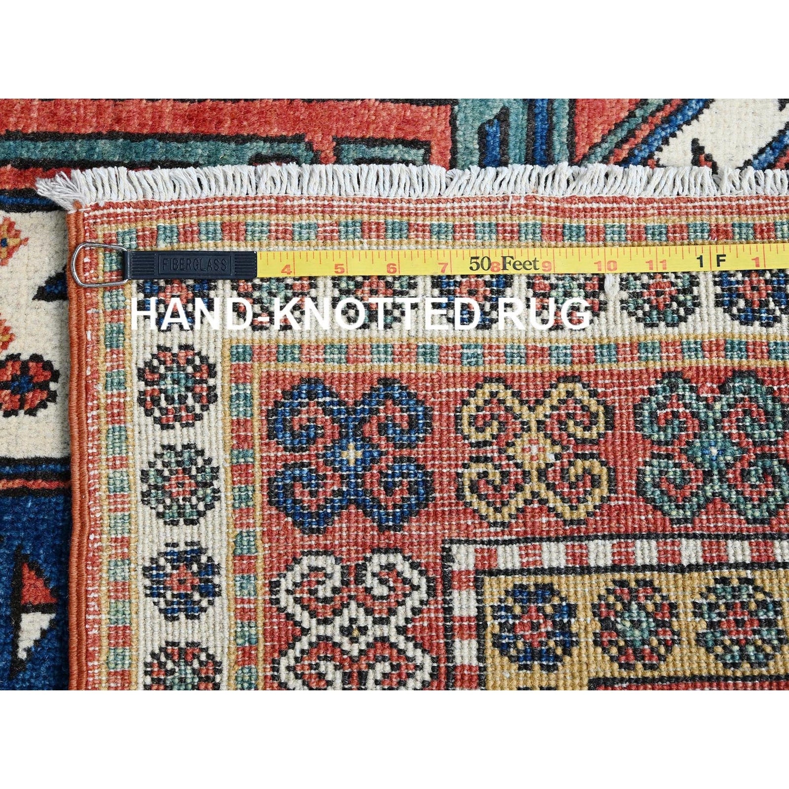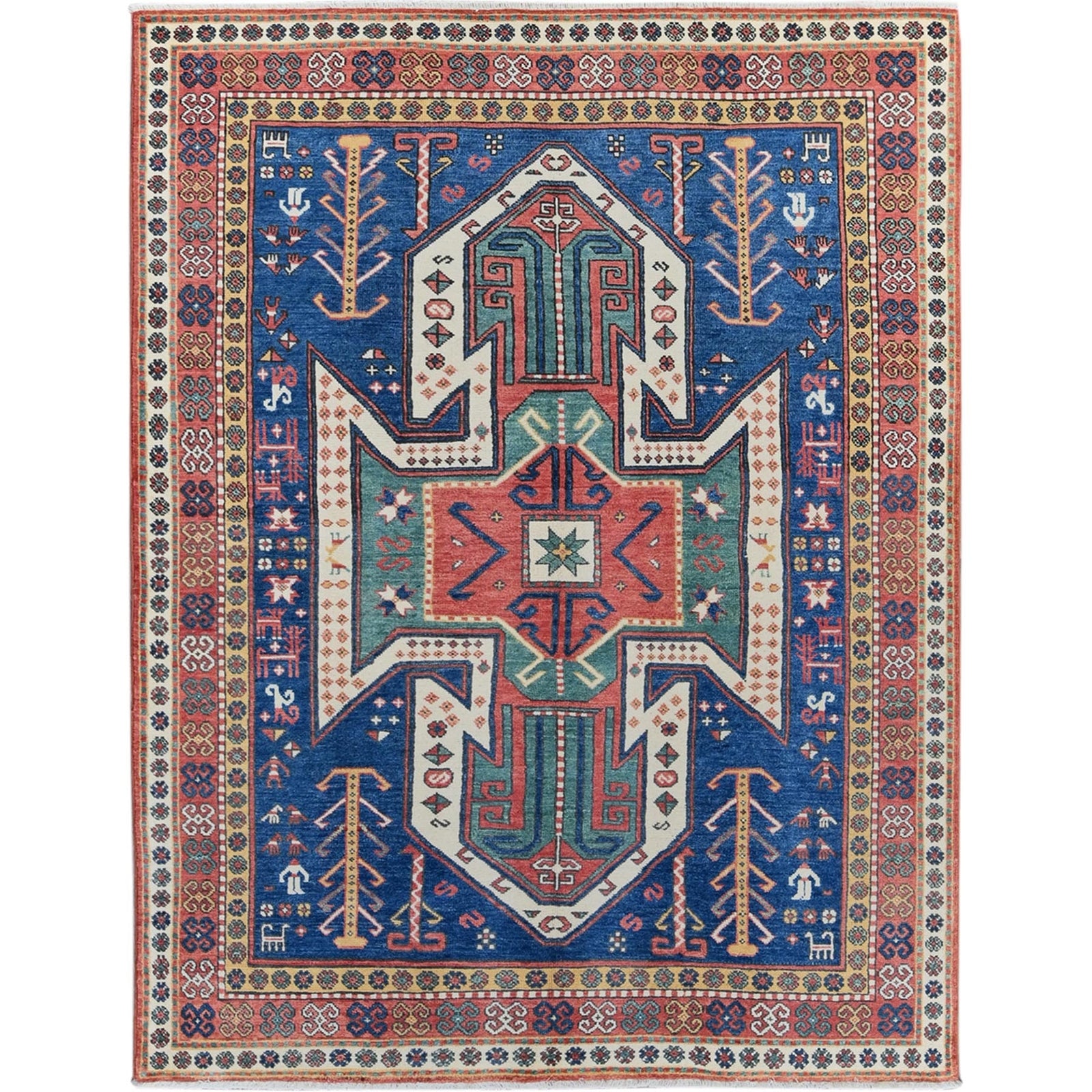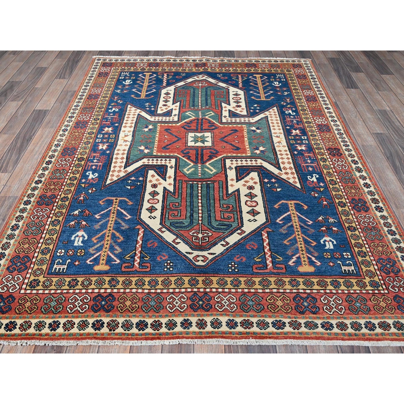 5'2"X7' Blue Swan Kazak With Animal Figurines Hand Knotted Soft Wool Rug
