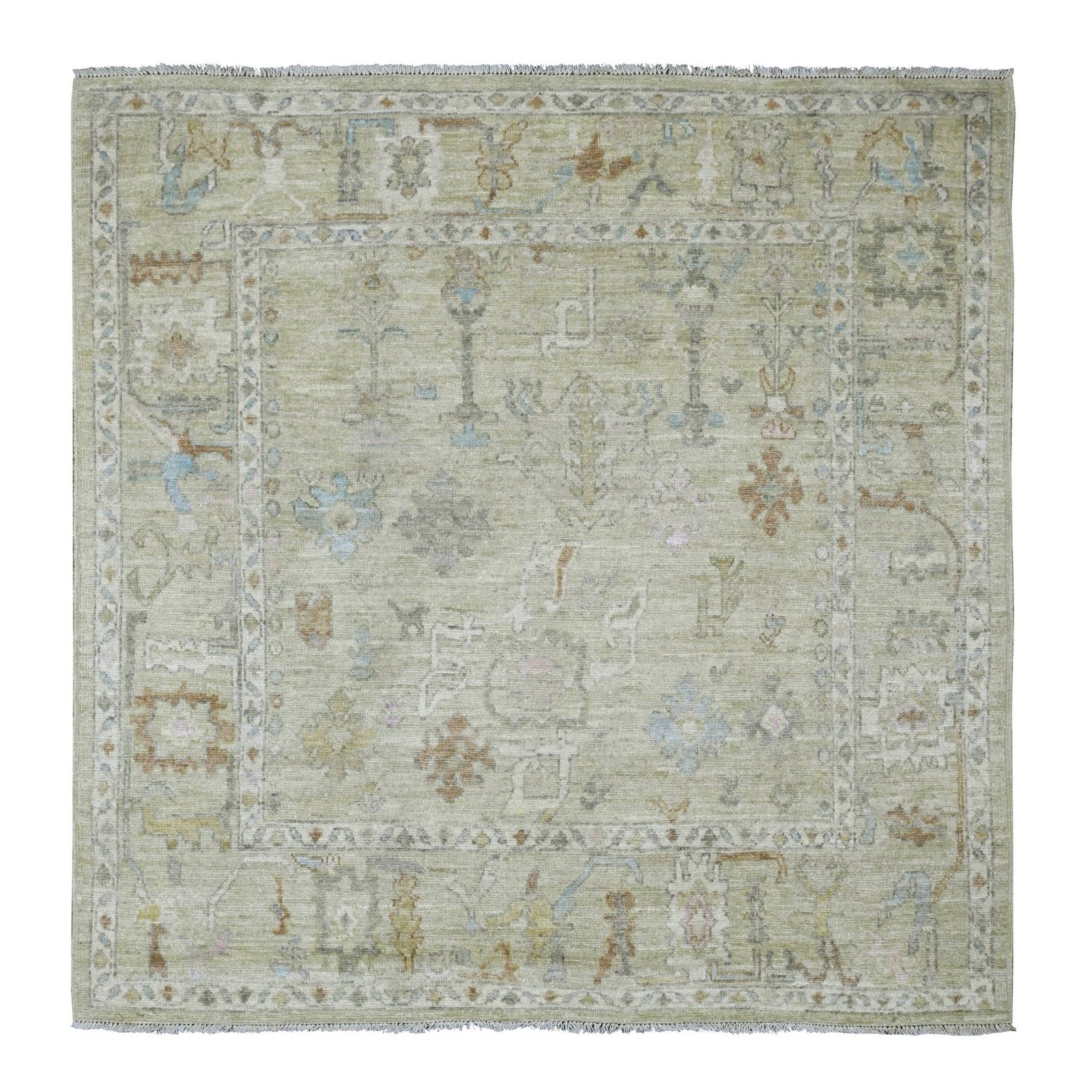 6'2"X6'2" Green Afghan Angora Oushak Hand Knotted 100% Wool Square Rug