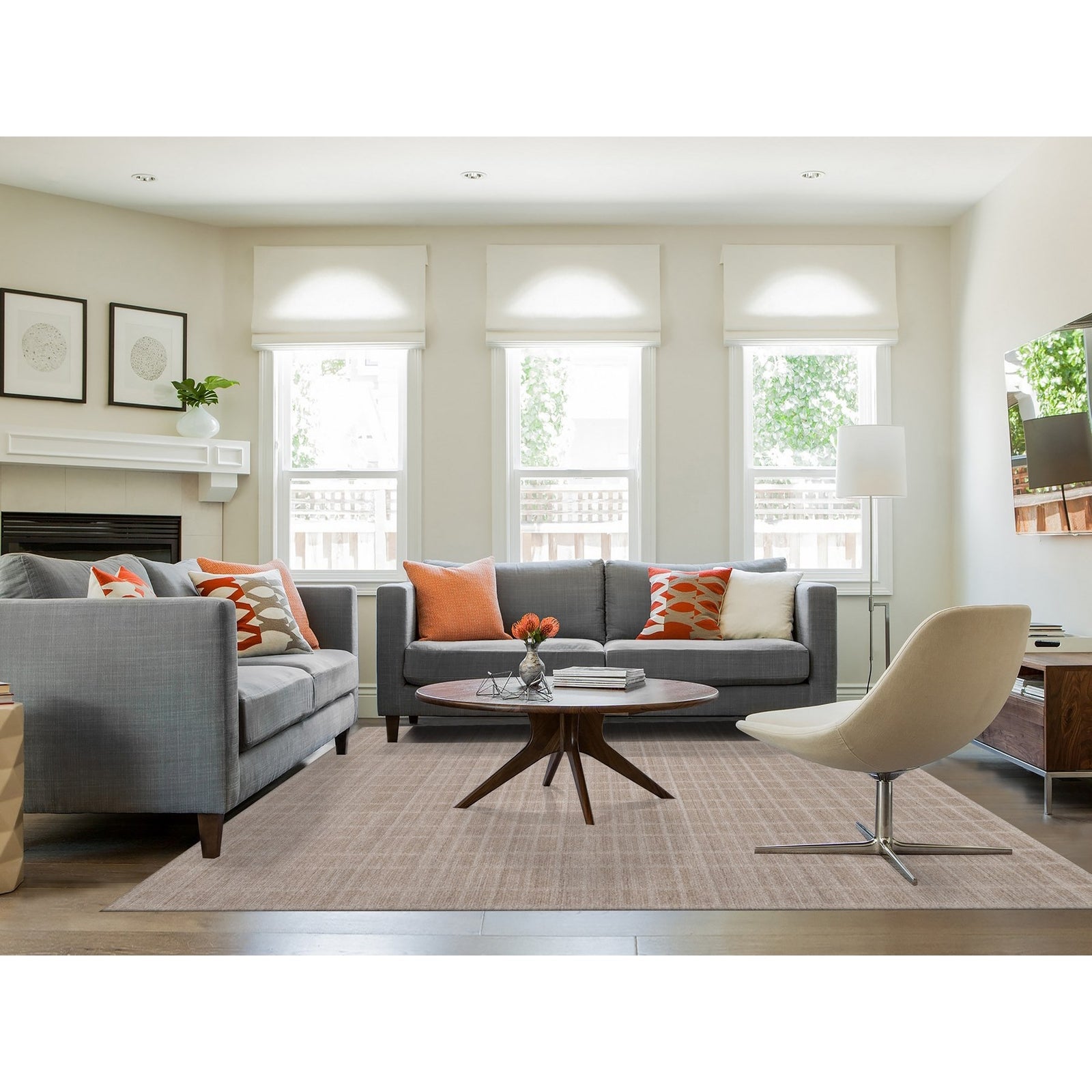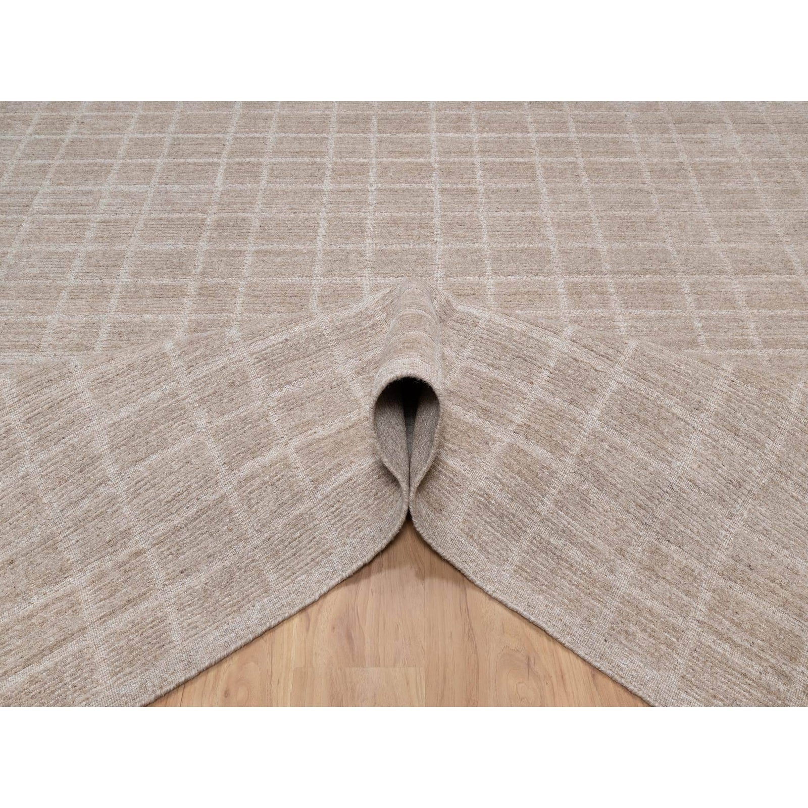 8'3"X9'10" Beaver Brown Hand Loomed Modern Erased Box Design All Wool Rug