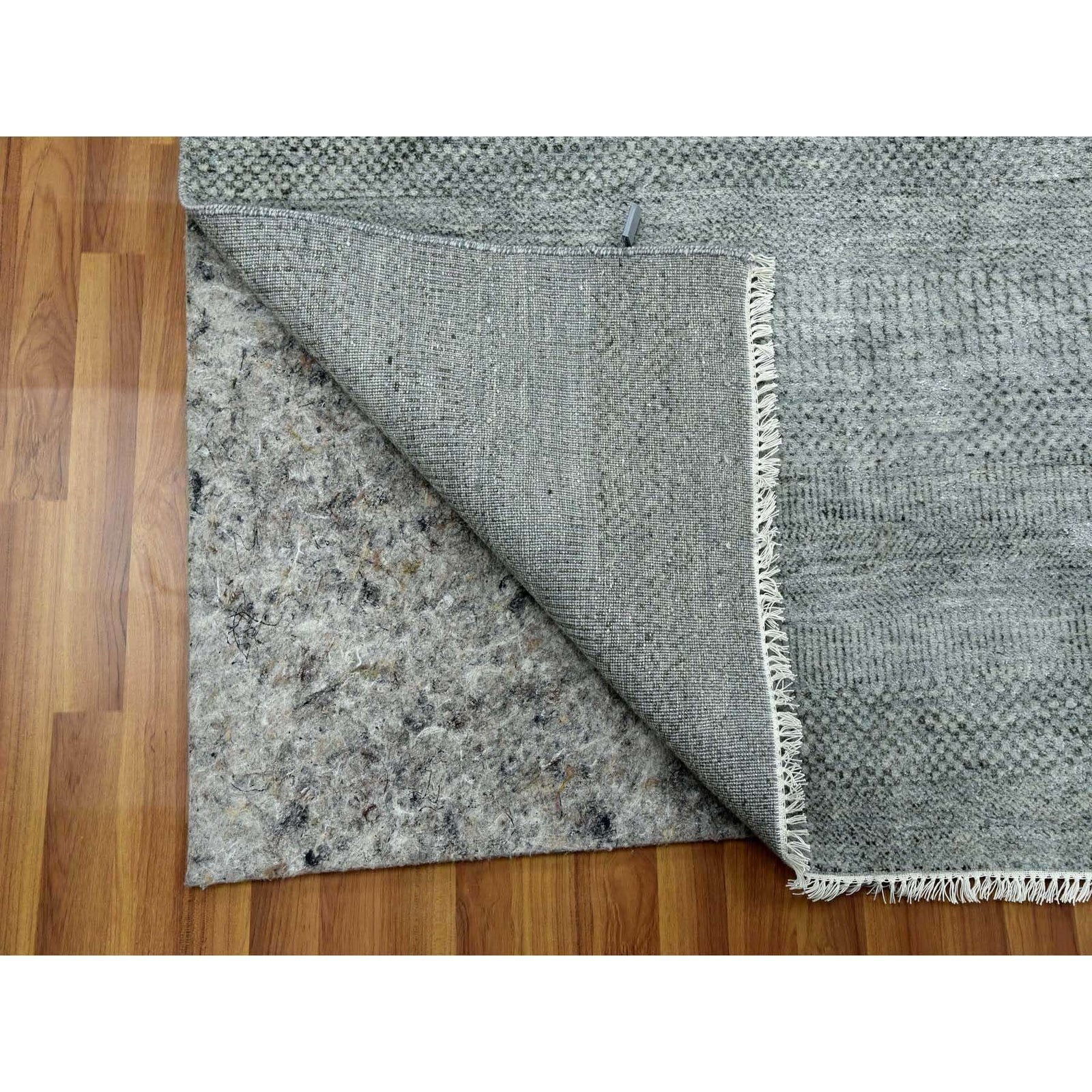 8'X10' Ash Gray Wool And Silk Hand Knotted Grass Design Oriental Rug