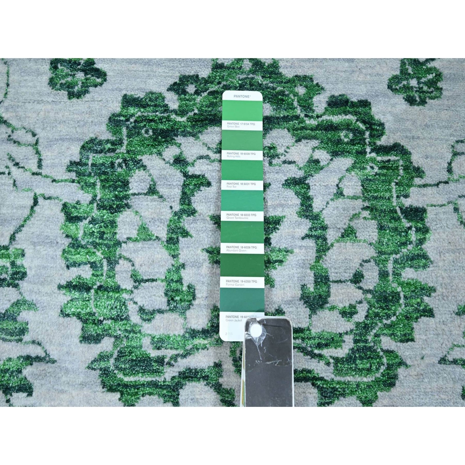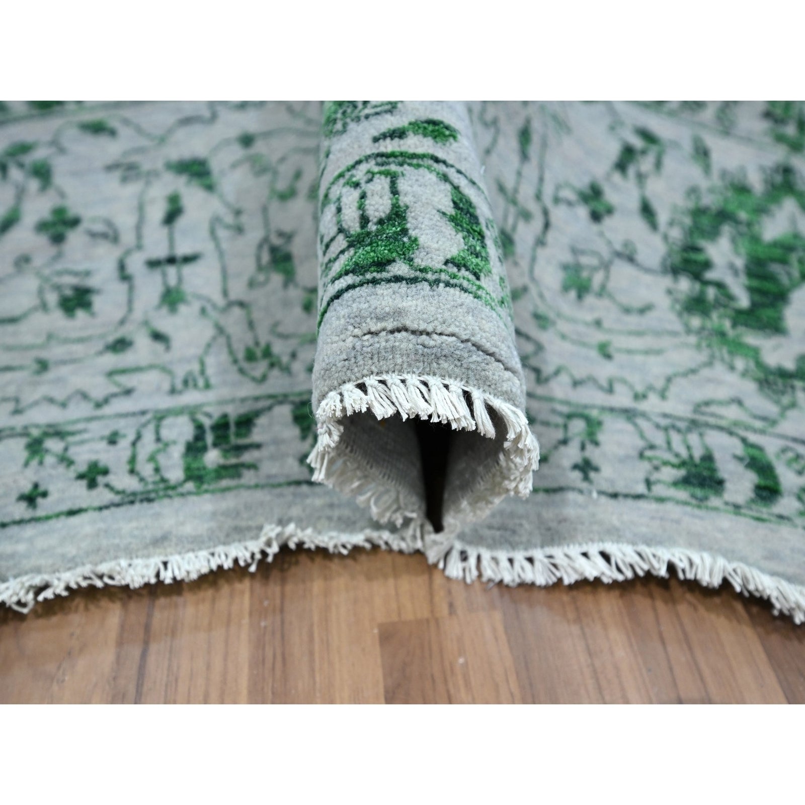 8'X10'1" White & Green Zoroastrian Influence Design Wool Hand Knotted Rug