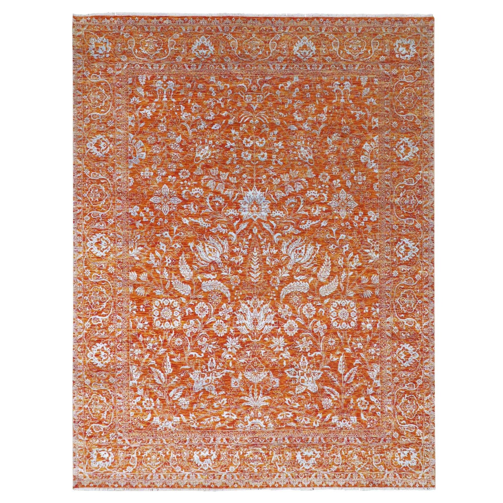 8'X10'4" Orange Zoroastrian Influence Design Wool & Silk Hand Knotted Rug