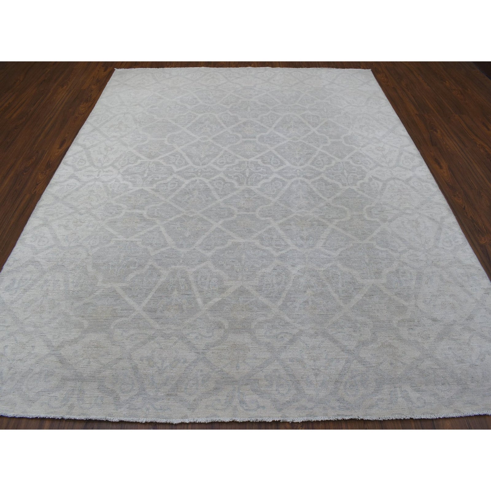 8'X9'9" Ivory White Wash Peshawar Natural Wool Hand Knotted Oriental Rug