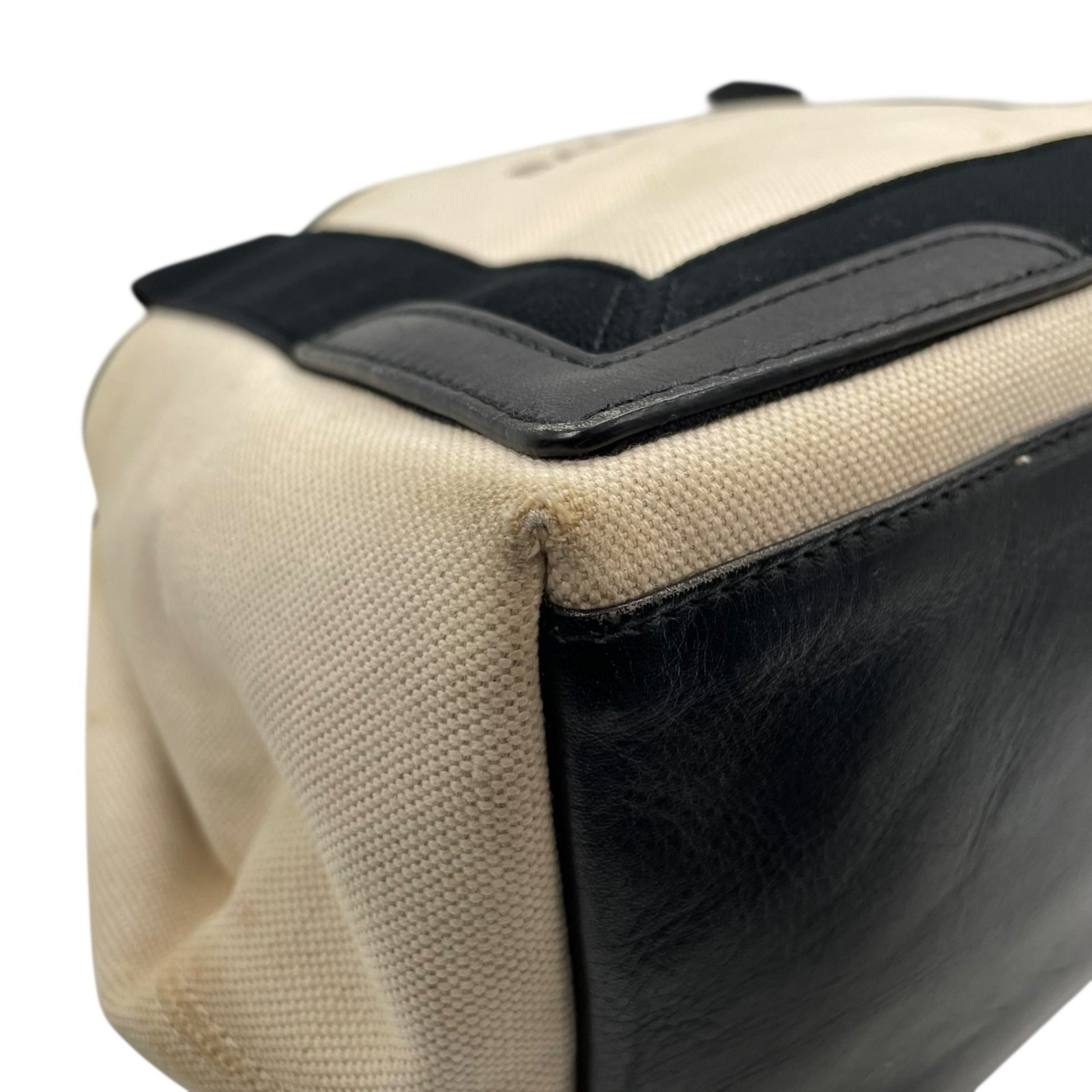 Balenciaga Cabas Handbag Tote Bag In White And Black Canvas With Leather Pouch