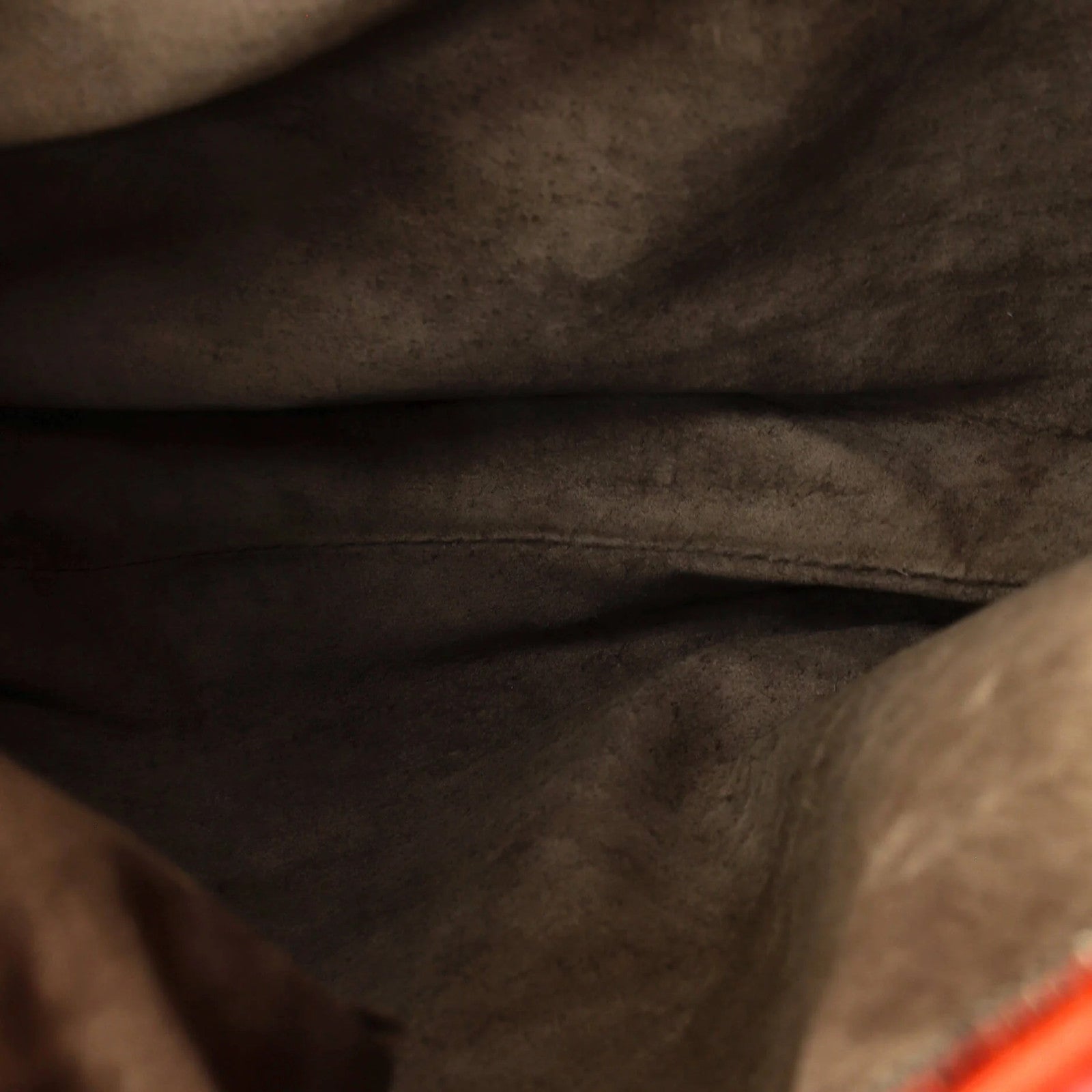 Condition: Very good. Exterior: pen marks, scuffs, creases, corner wear. Handles/Straps: scuffs, creases. Interior: moderate odor, scuffs, discoloration. Hardware: scratches, tarnished