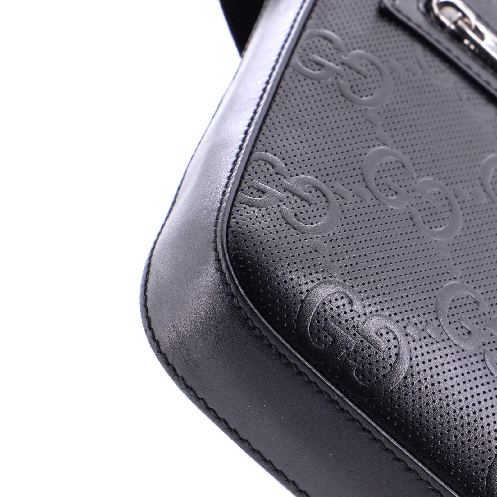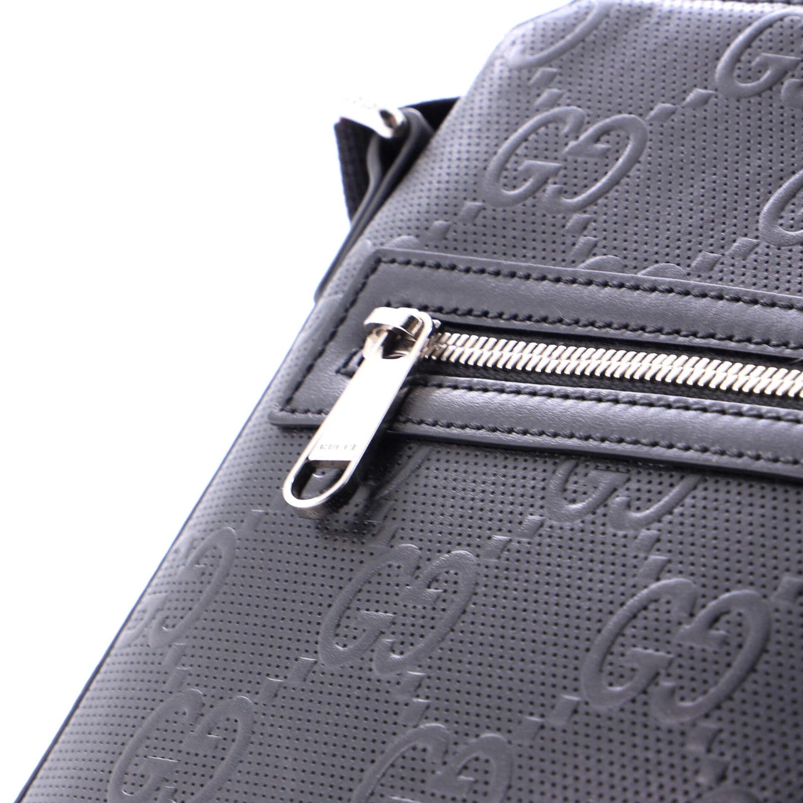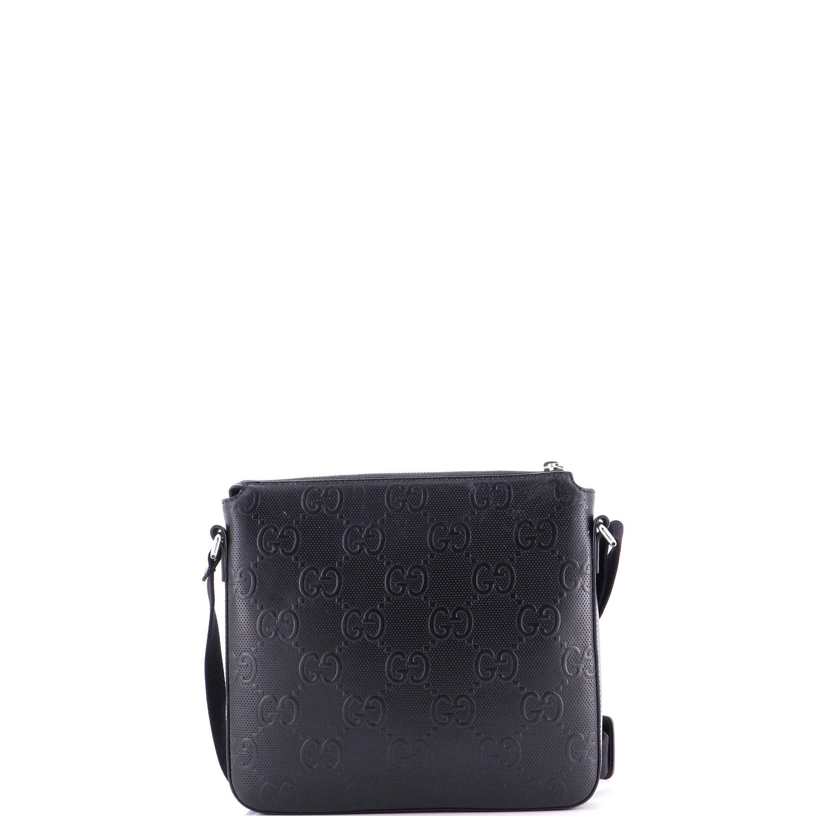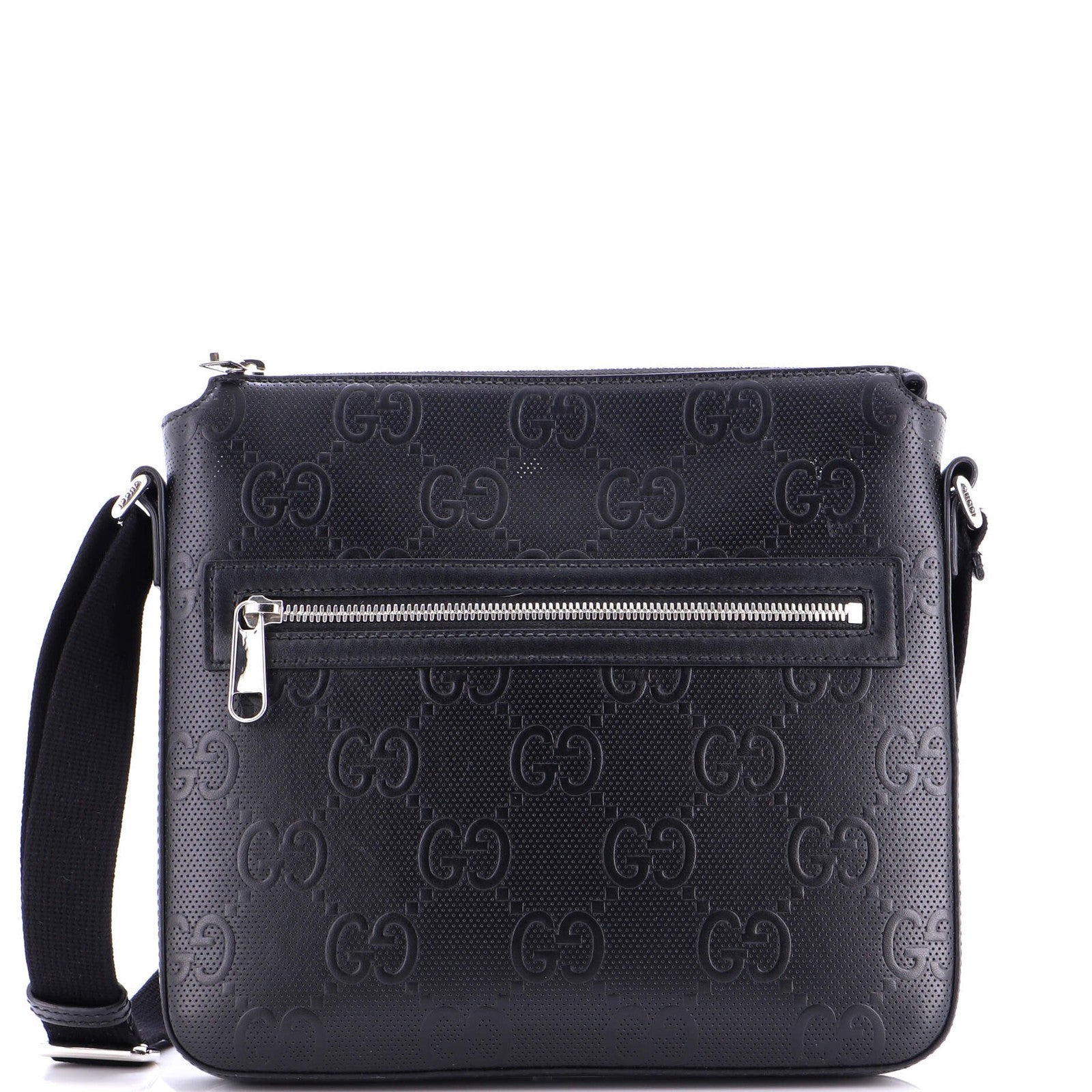 Gucci Front Zip Messenger Gg Embossed Perforated Leather Small