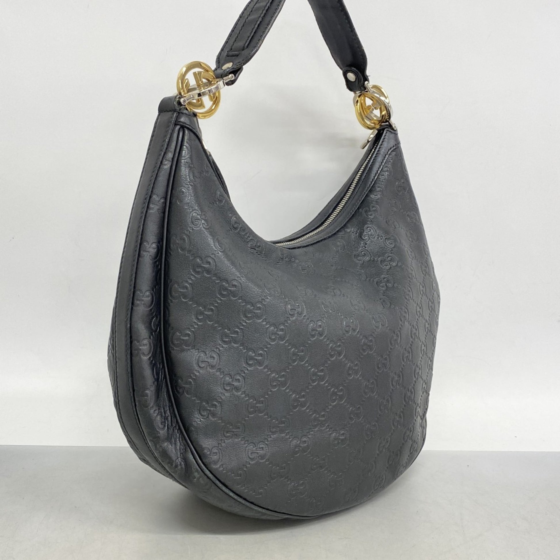 Gucci Shoulder Bag Guccissima 232962 Leather Black Gold